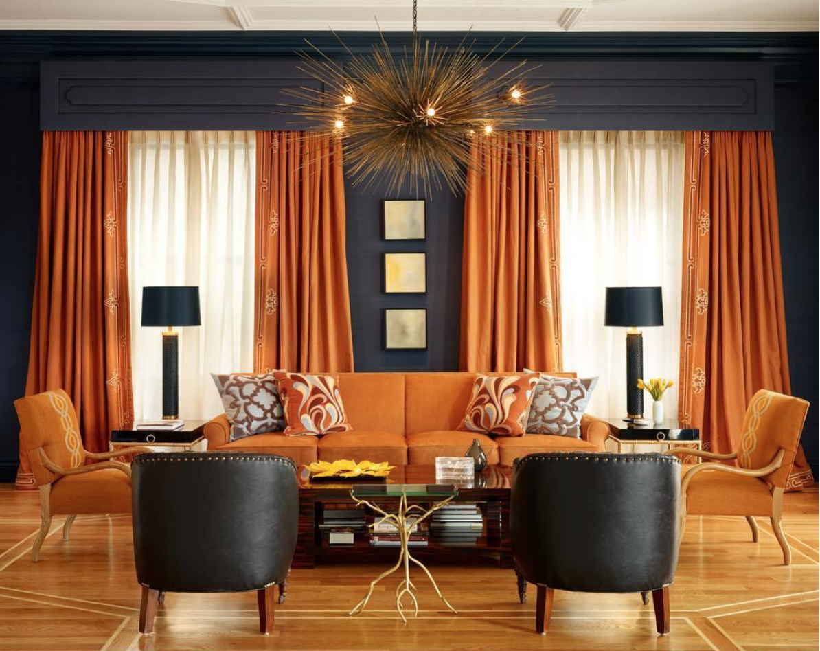 Сочетание оранжевого и черного цвета в интерьере (78 фото)