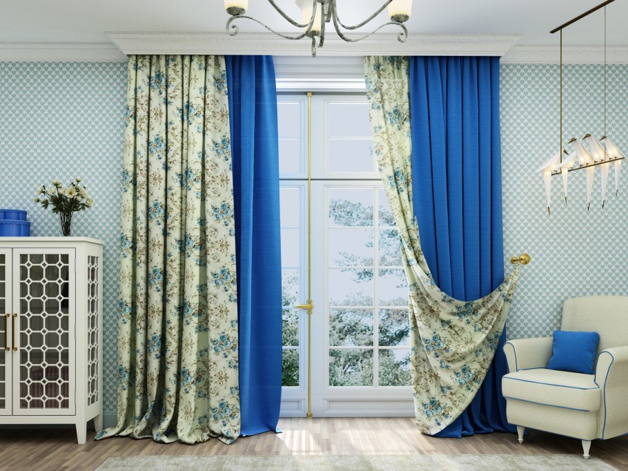 Голубые шторы