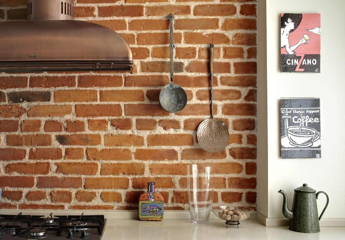 Декор под кирпич на кухне