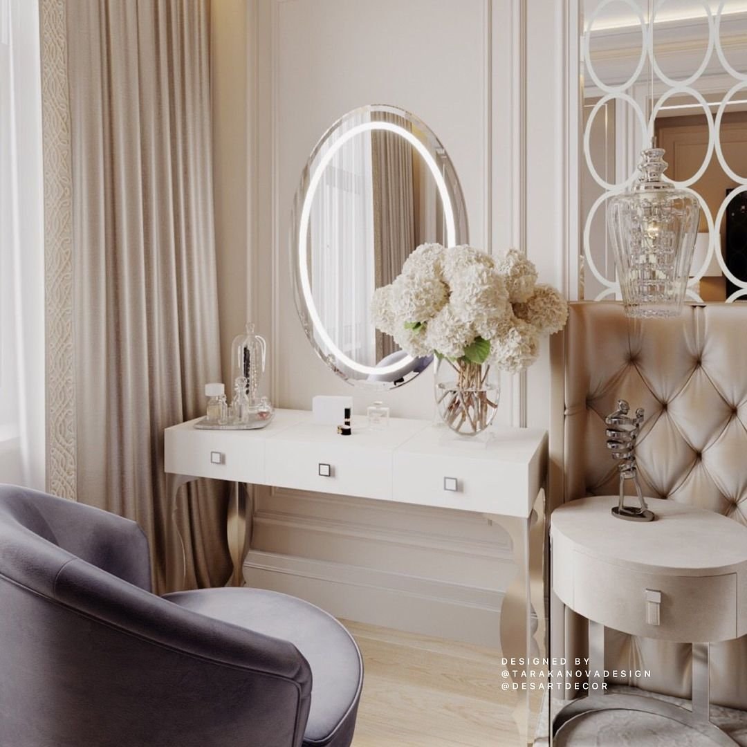 Туалетный столик зеркальный с ящиками и фигурными ножками Vivien