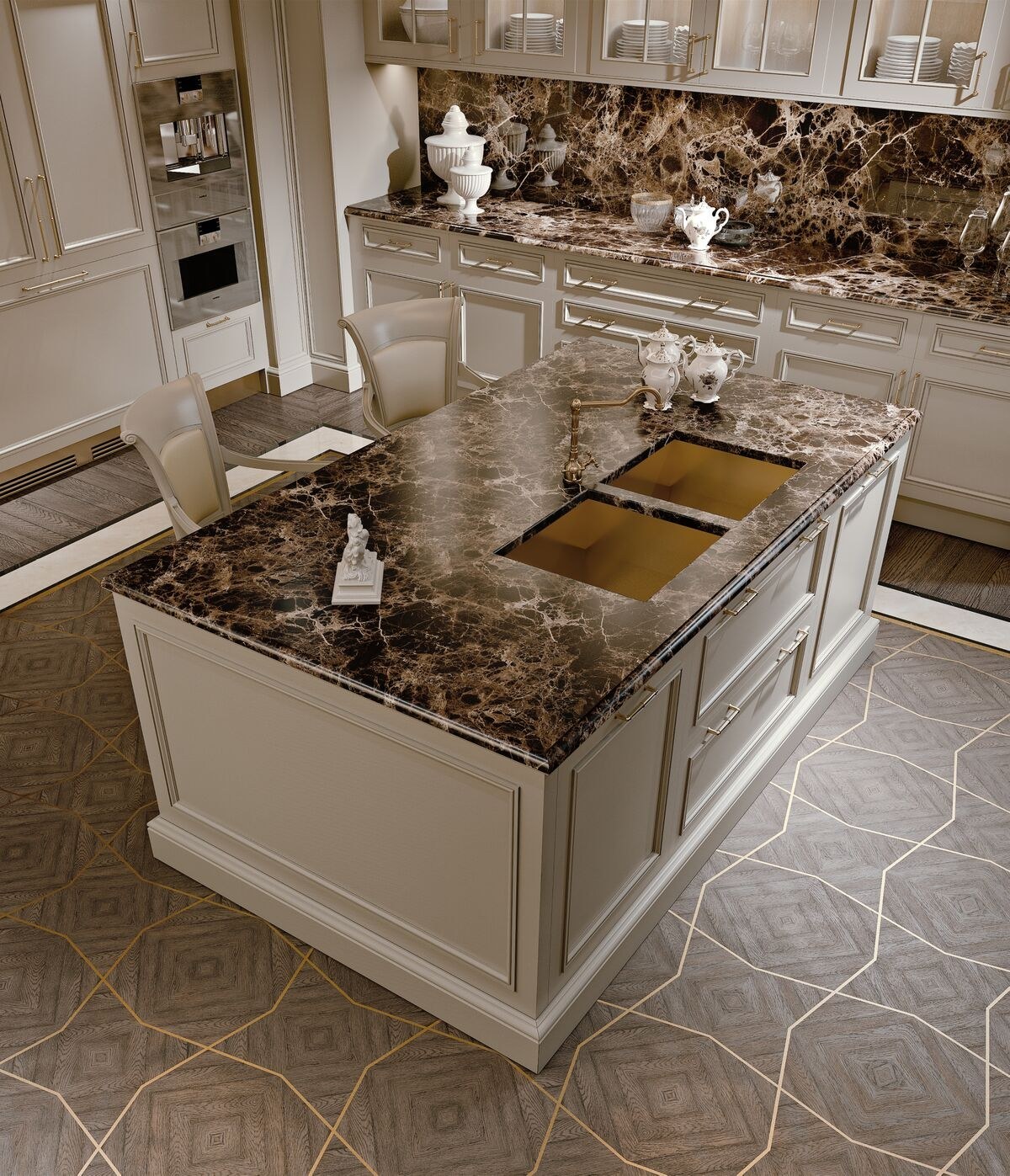 Кухня капучино с мраморной столешницей