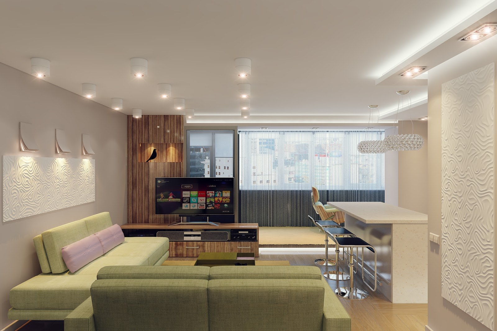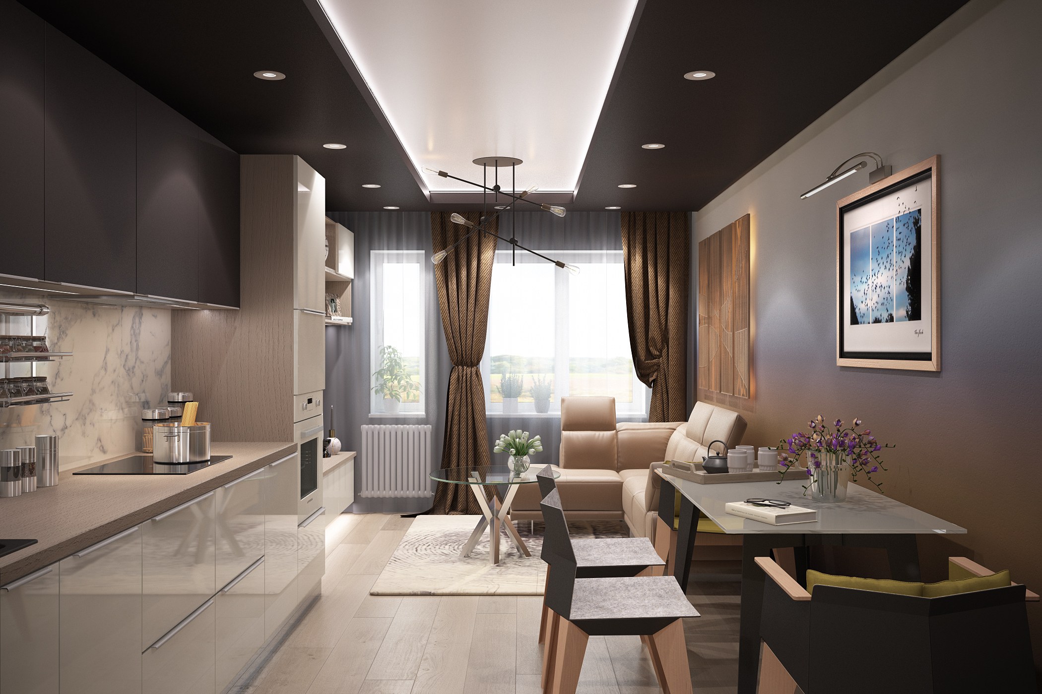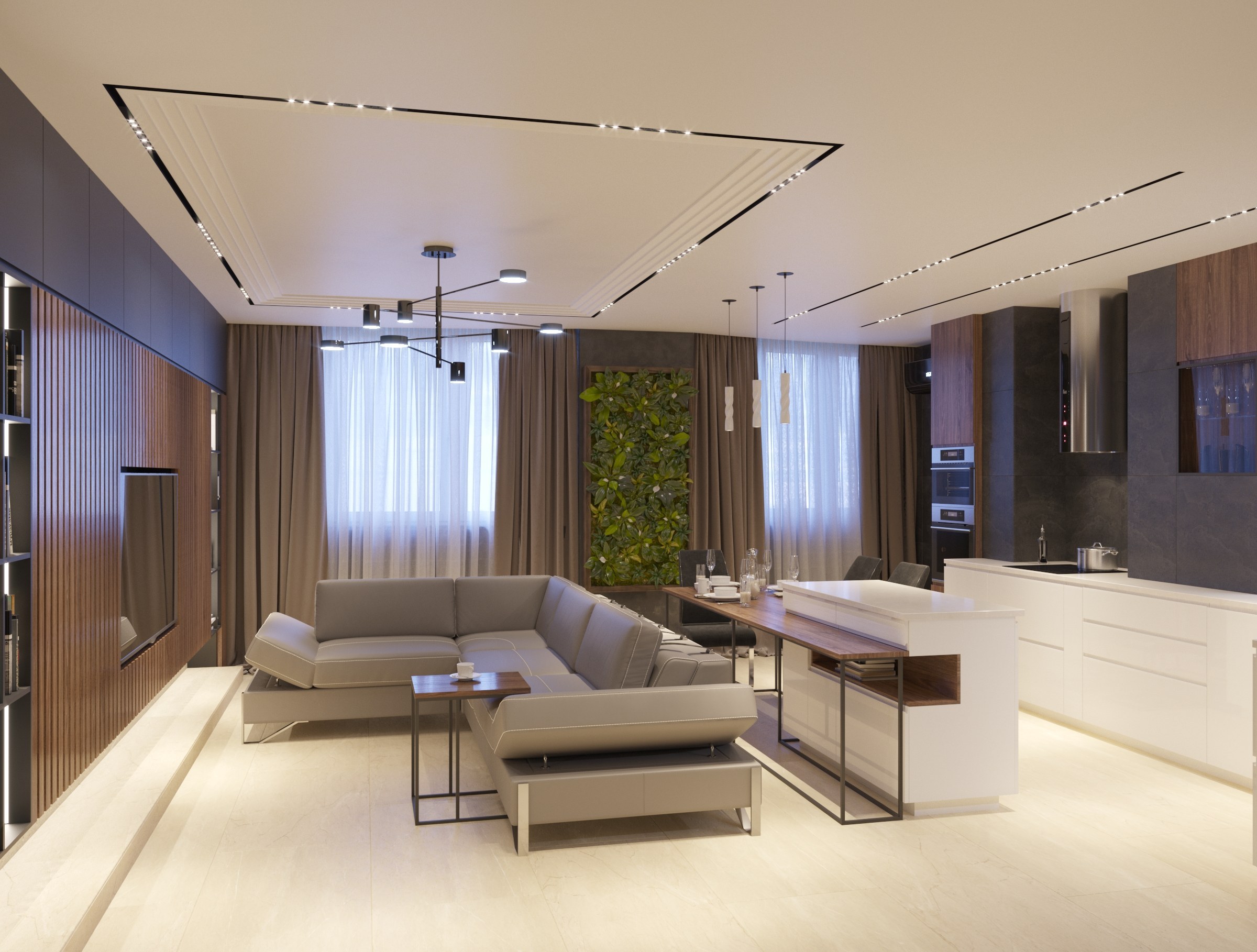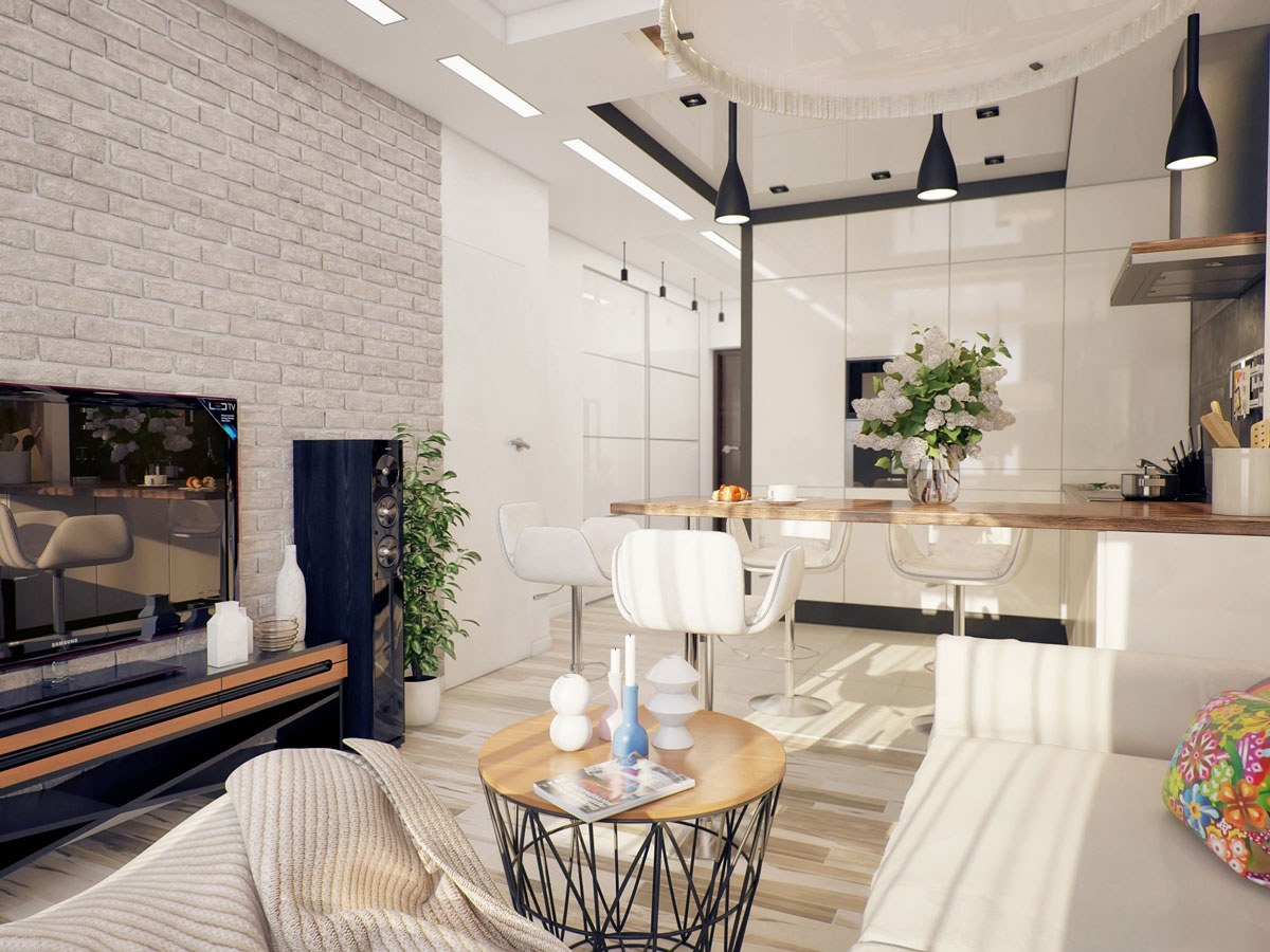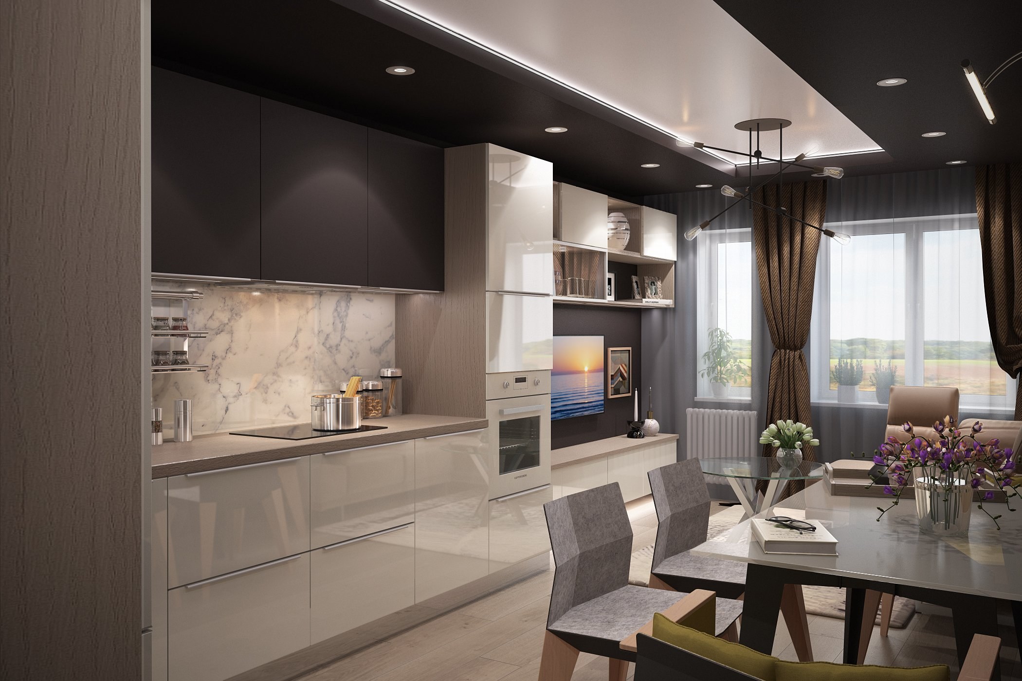 3д визуализация интерьеров Холли и совместная гостиная кухня