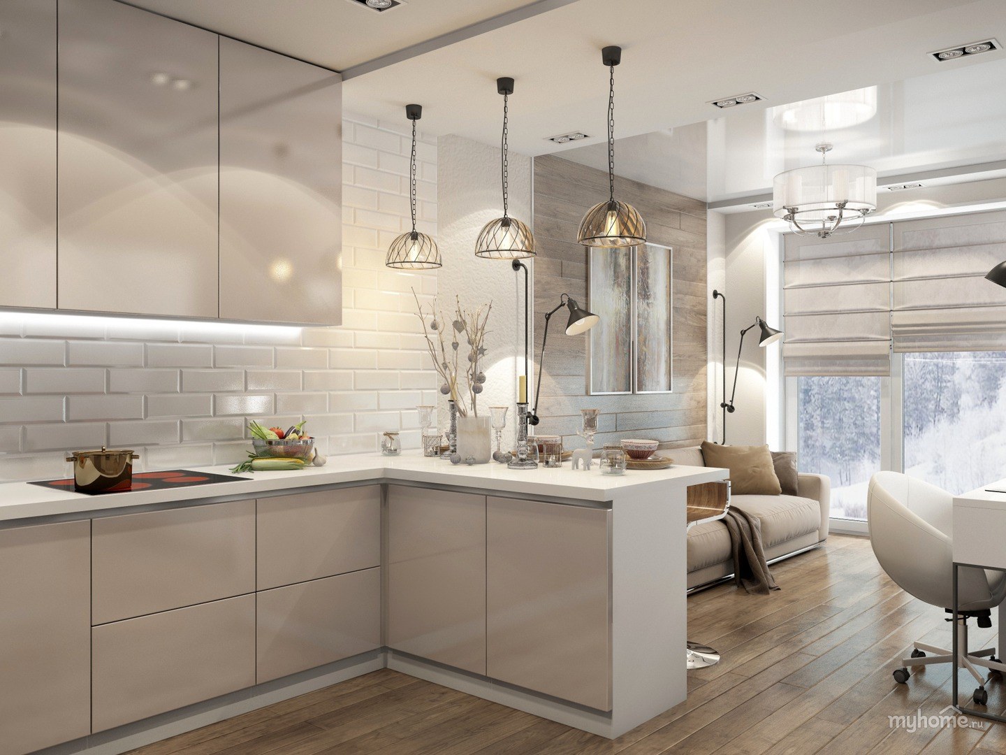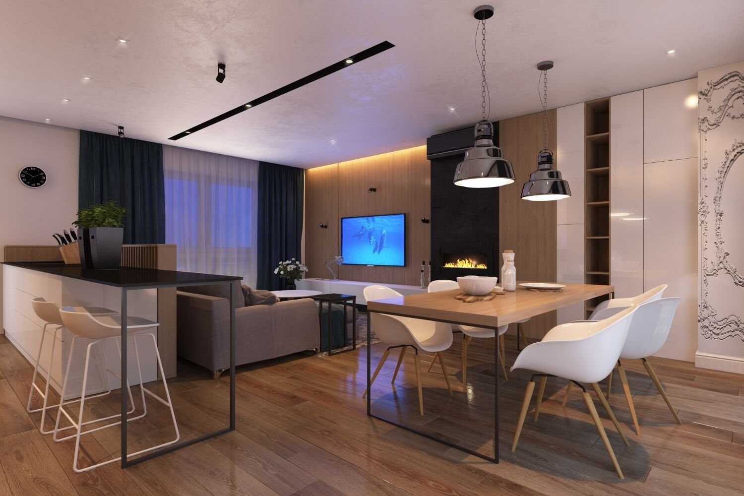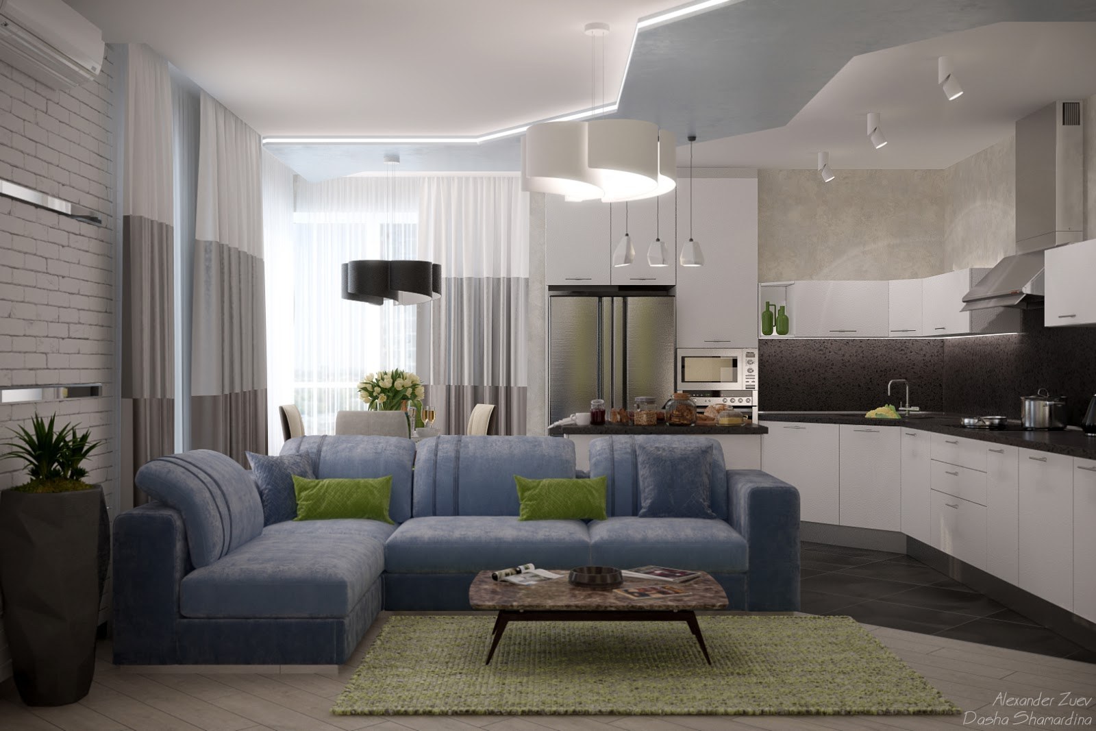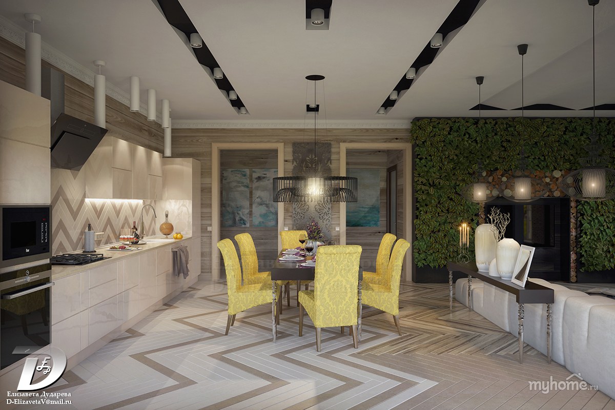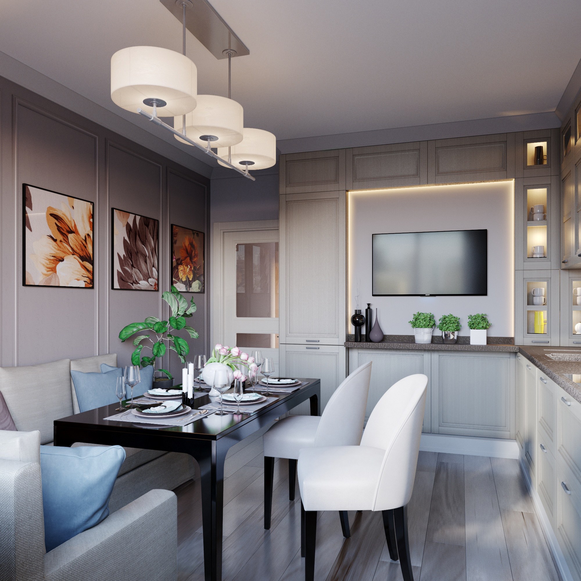 3д визуализация интерьеров Холли и совместная гостиная кухня