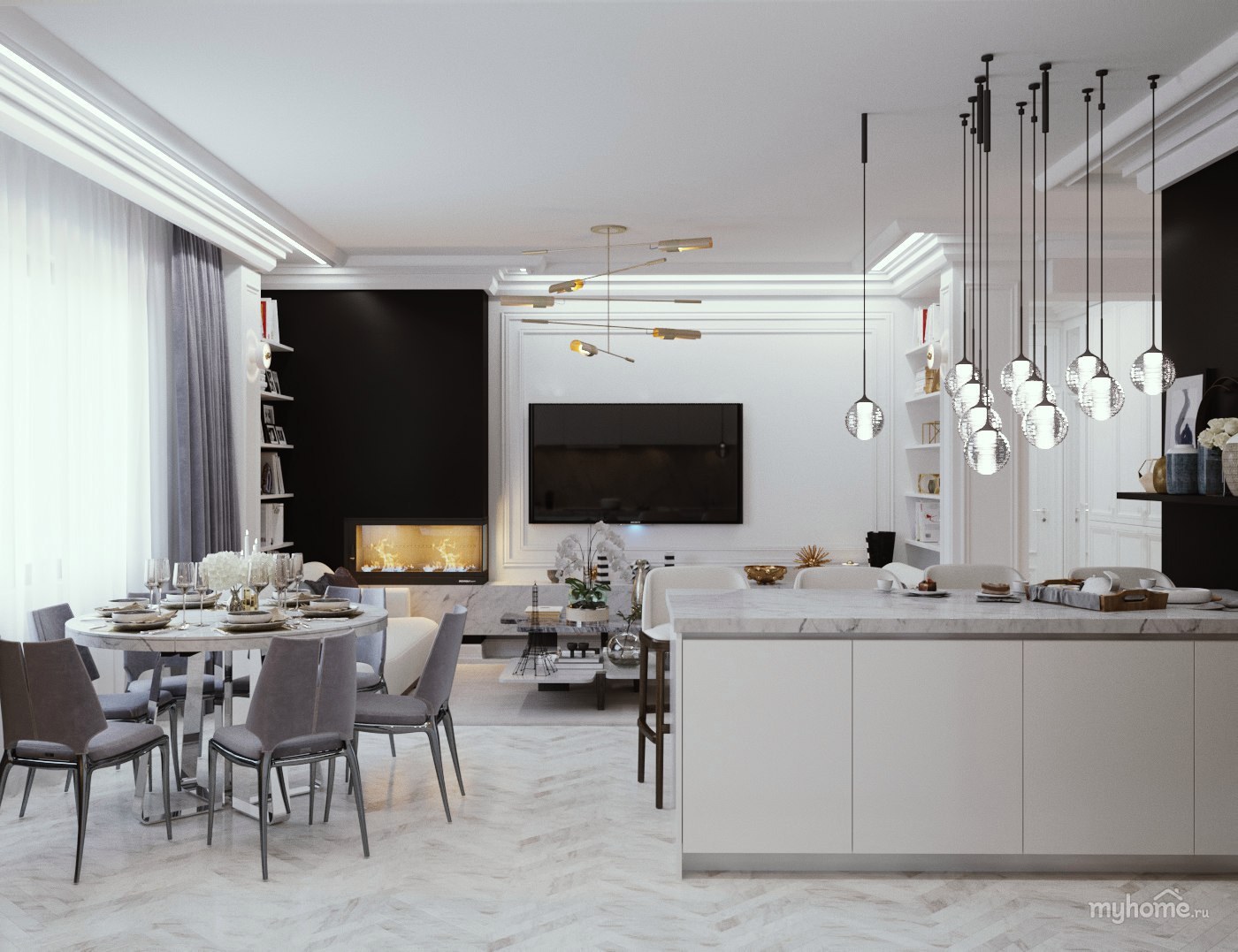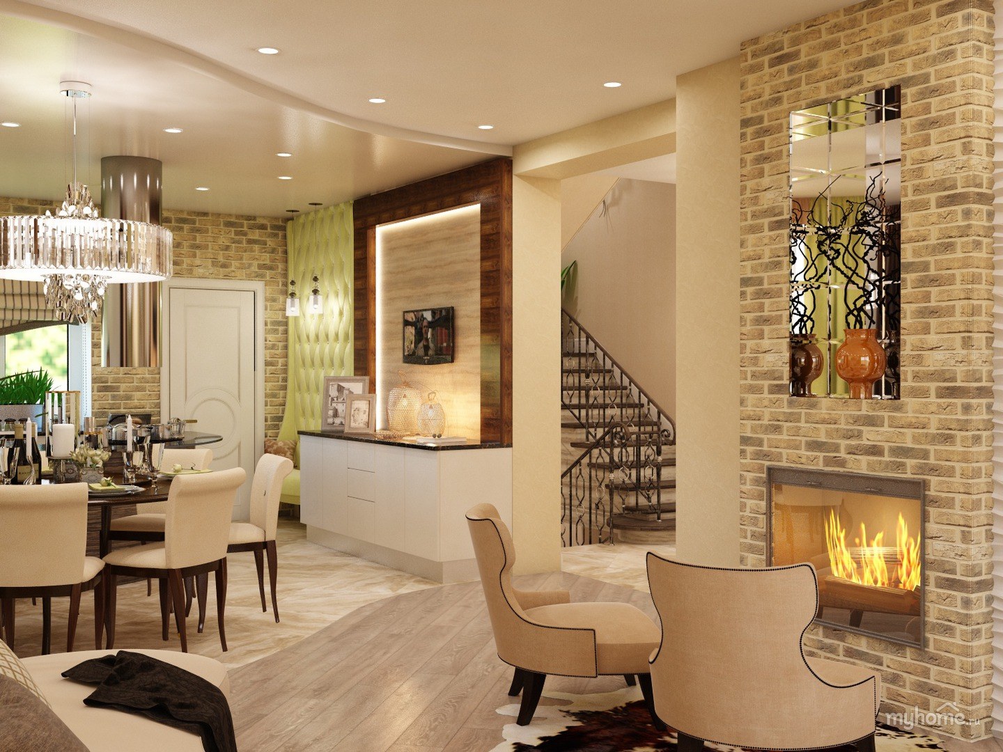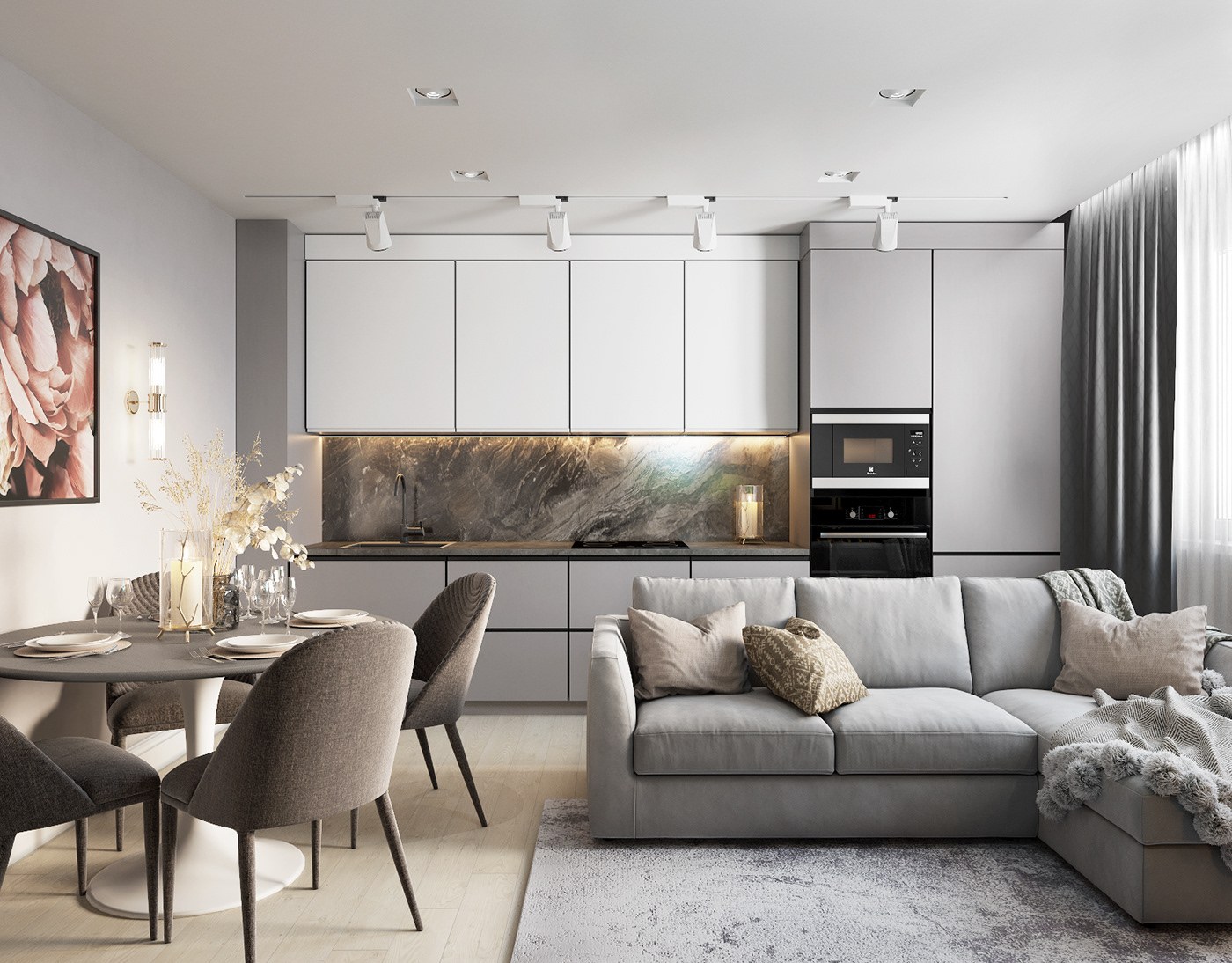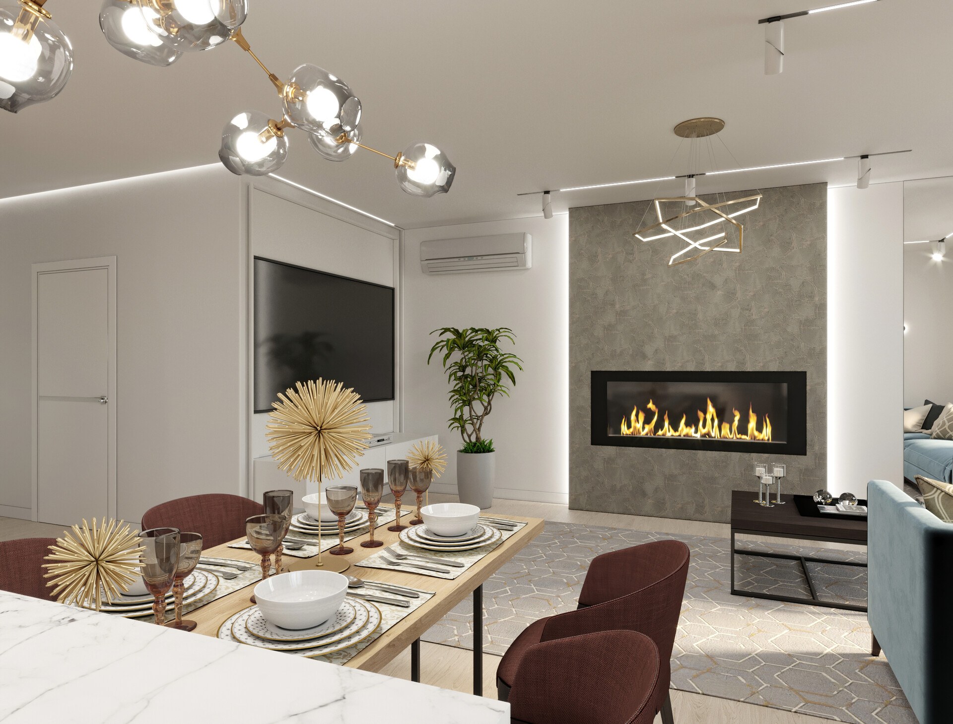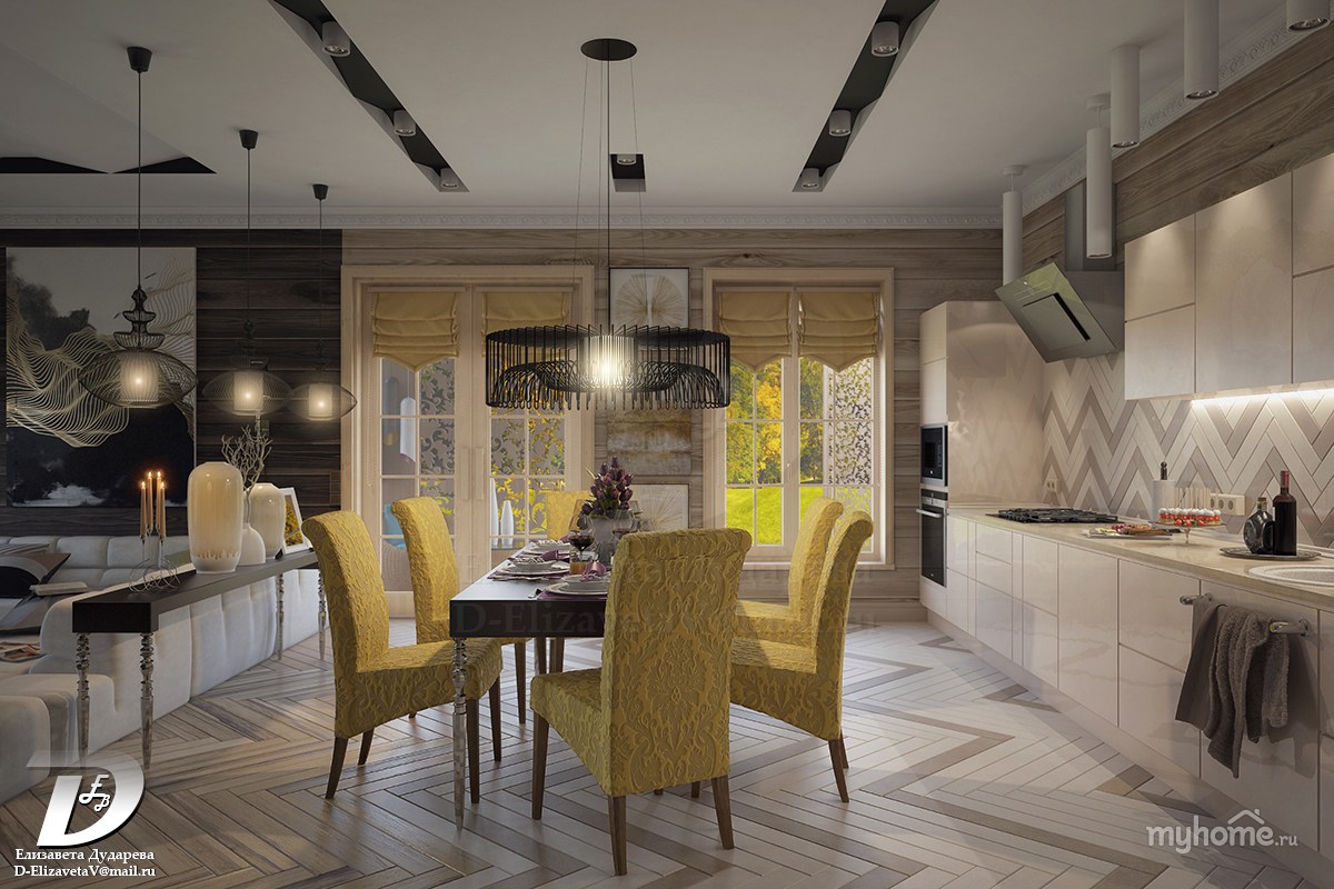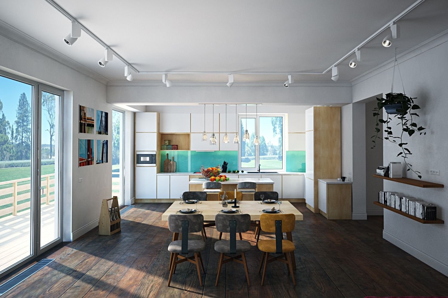 3д визуализация интерьеров Холли и совместная гостиная кухня