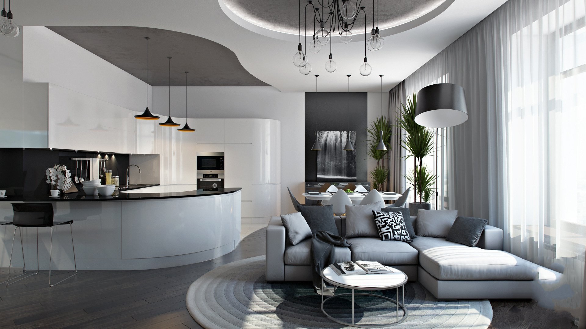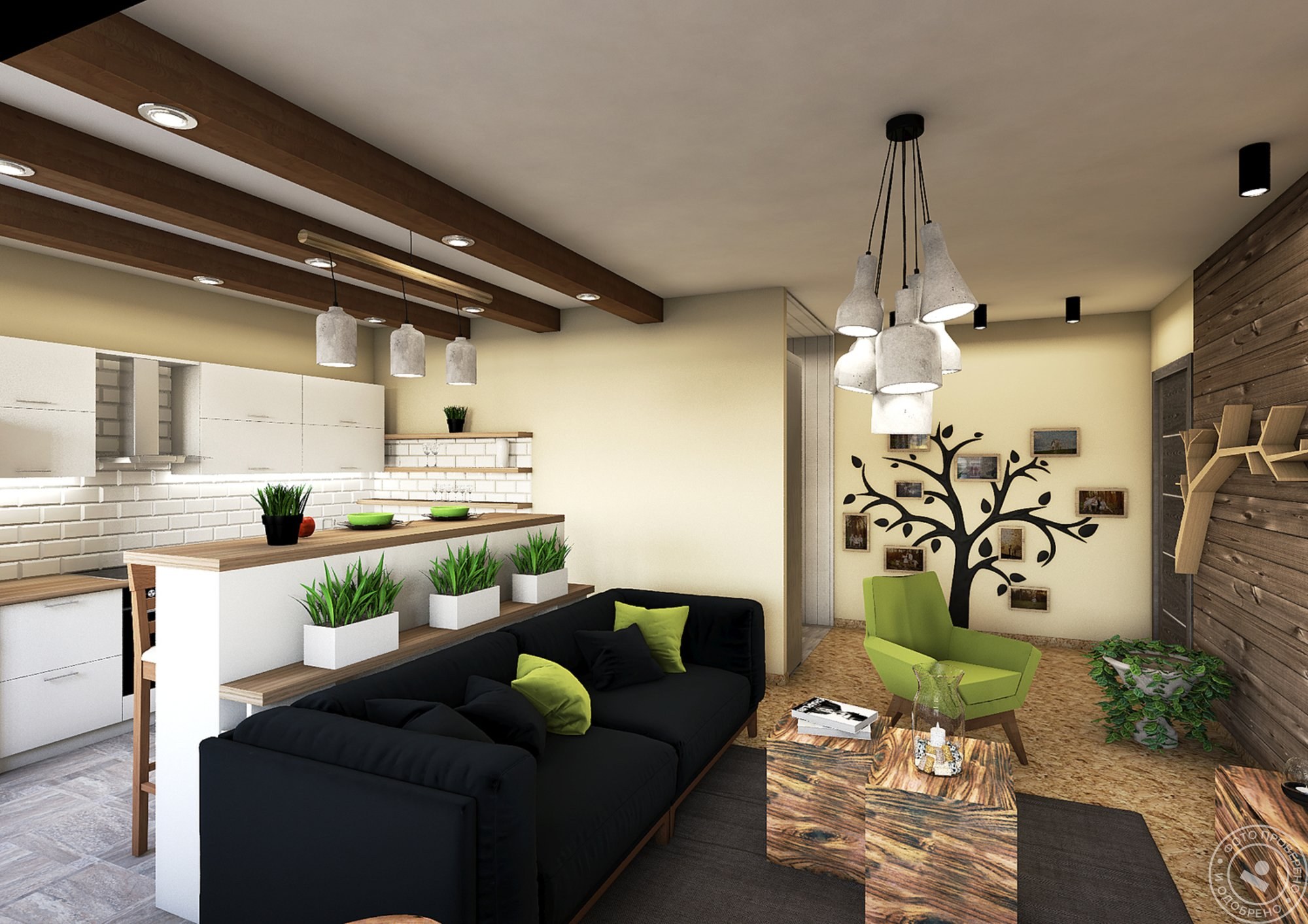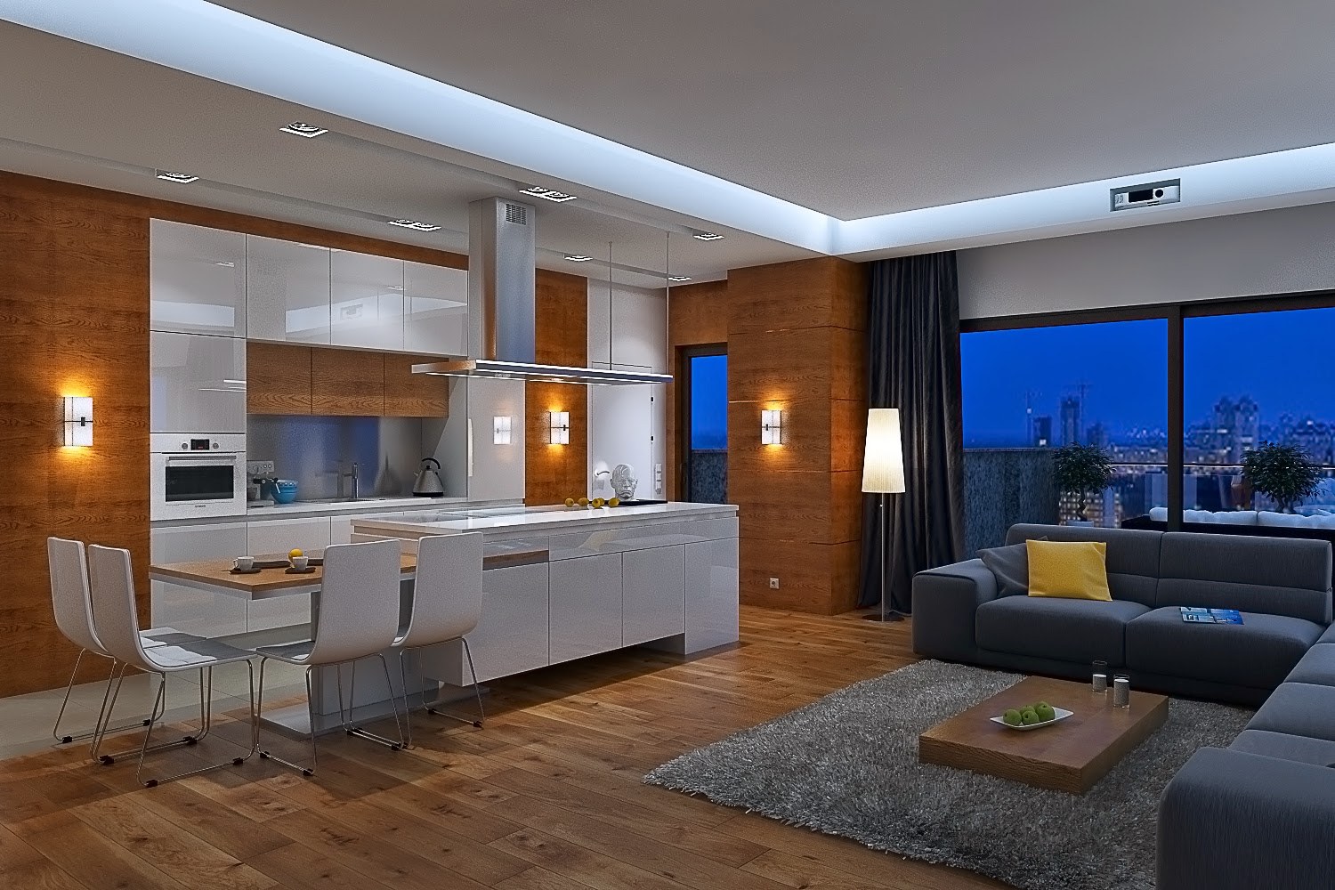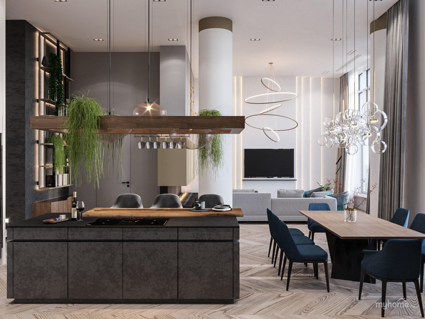 3д визуализация интерьеров Холли и совместная гостиная кухня