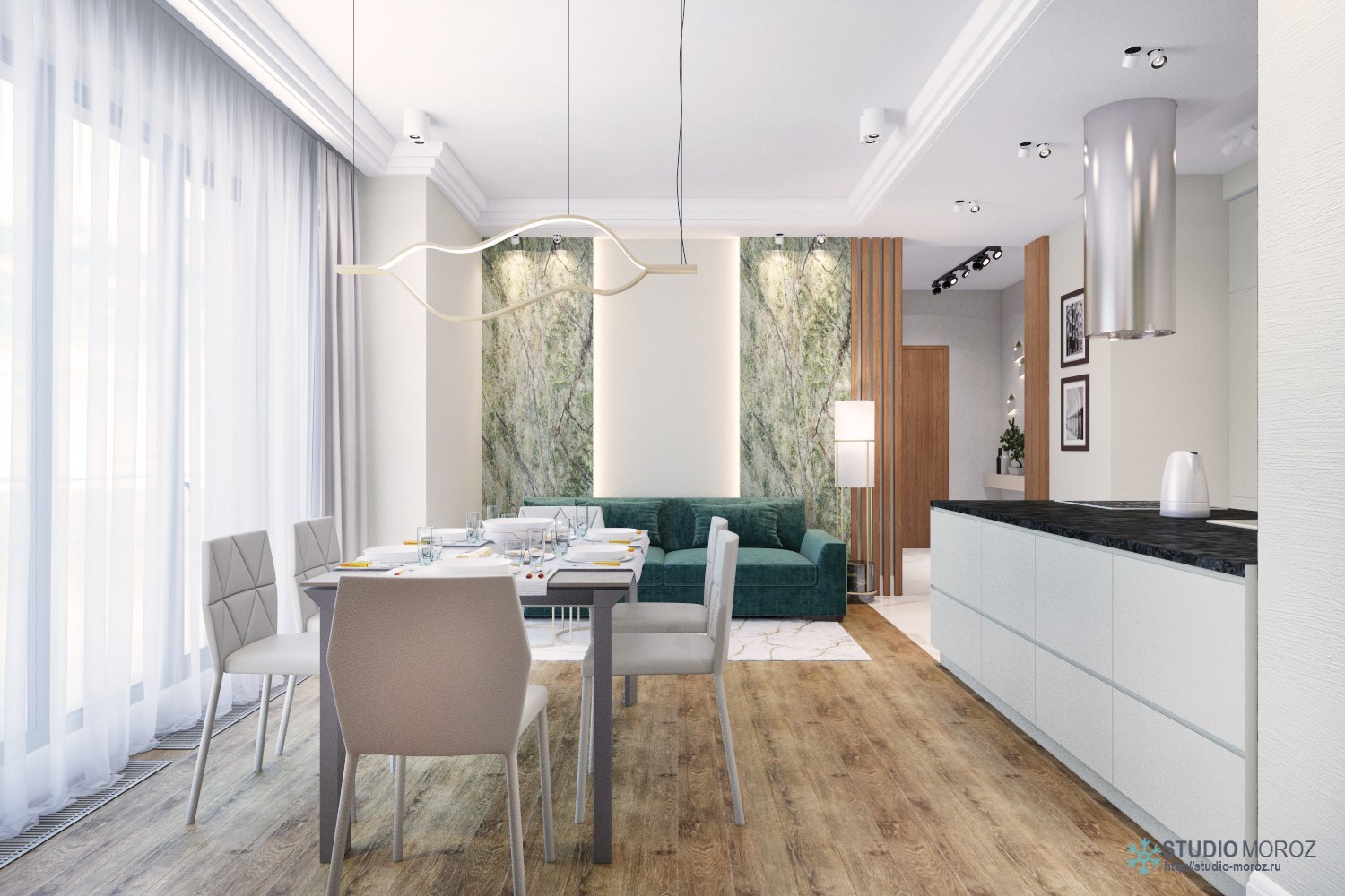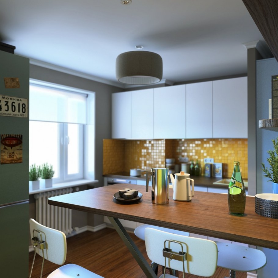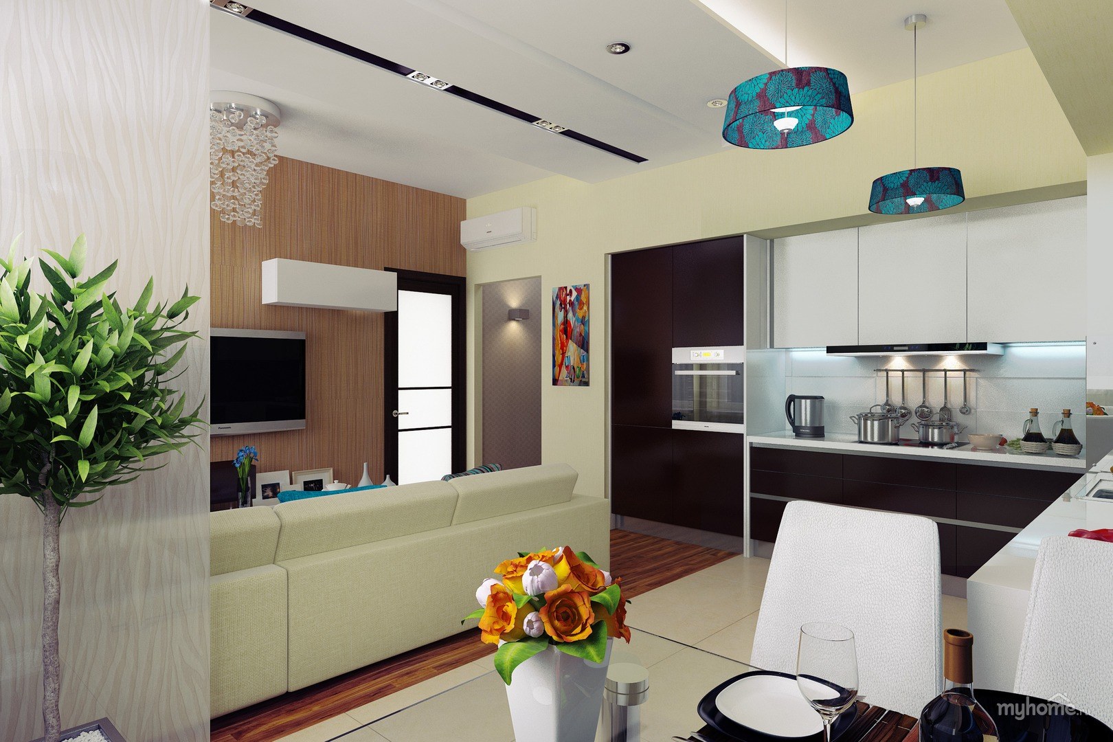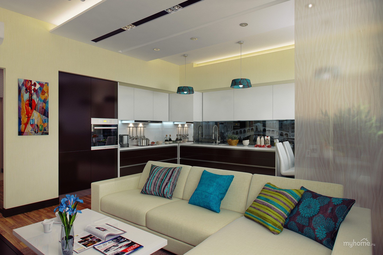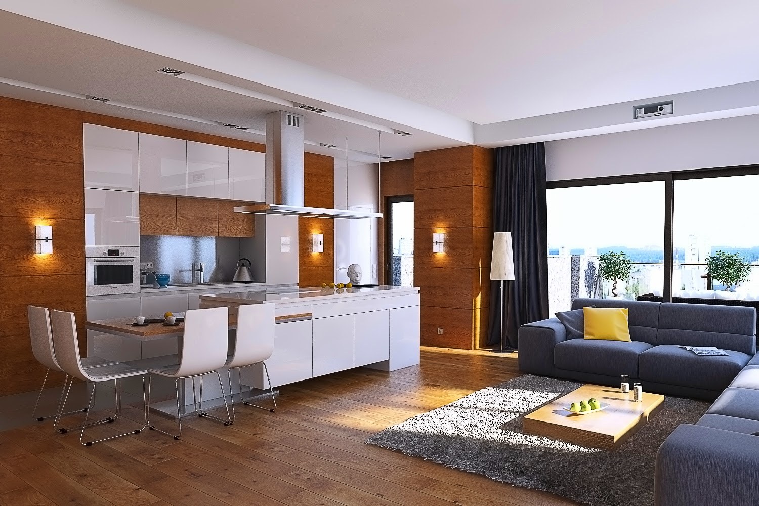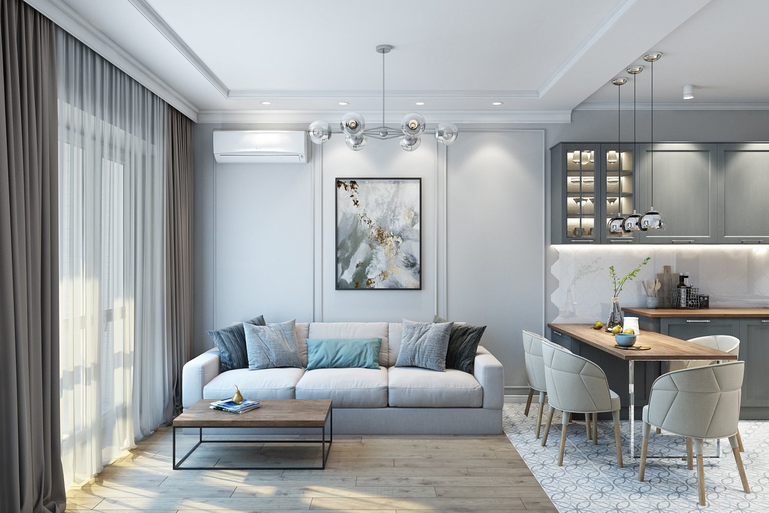 3д визуализация интерьеров Холли и совместная гостиная кухня