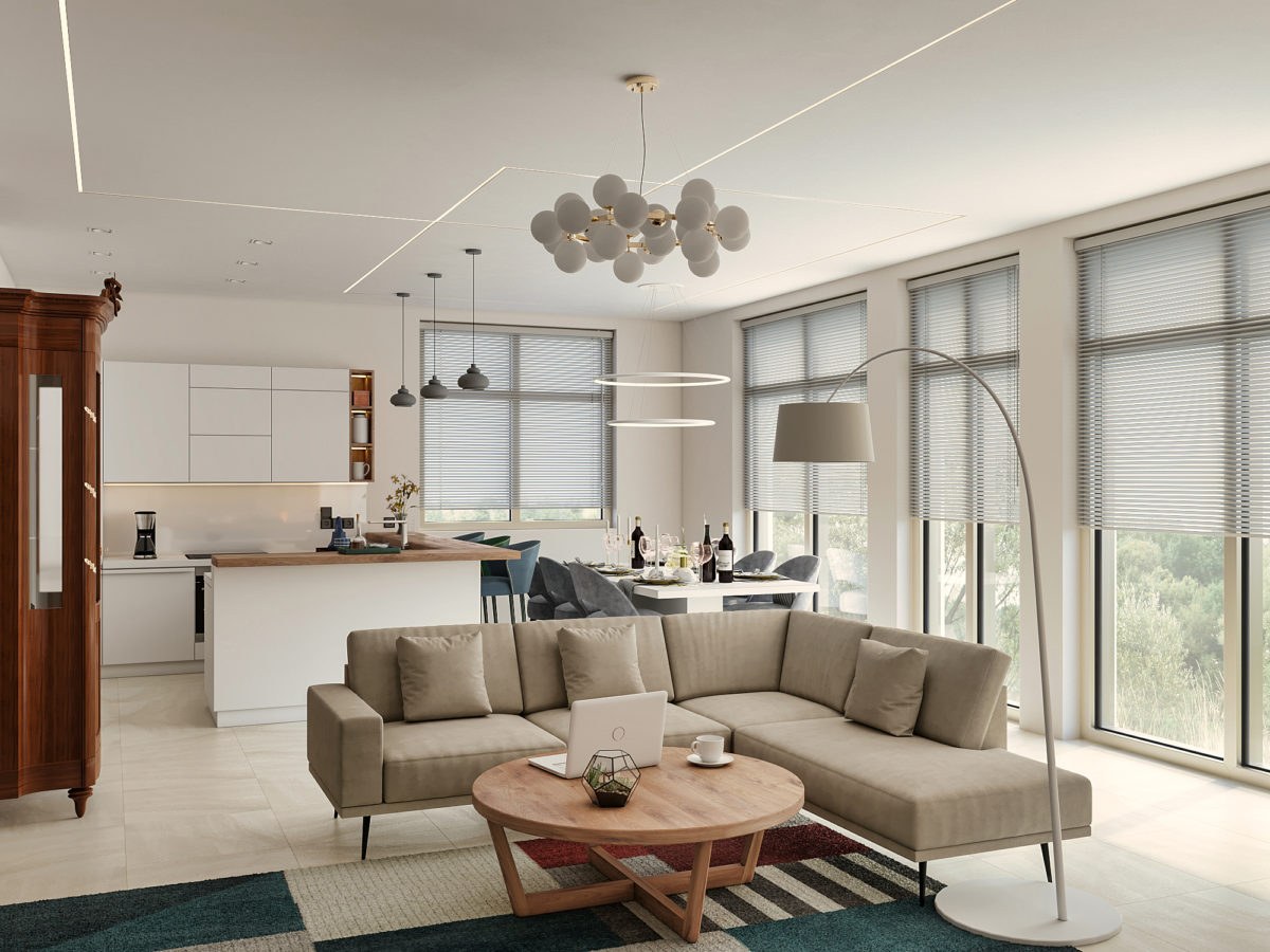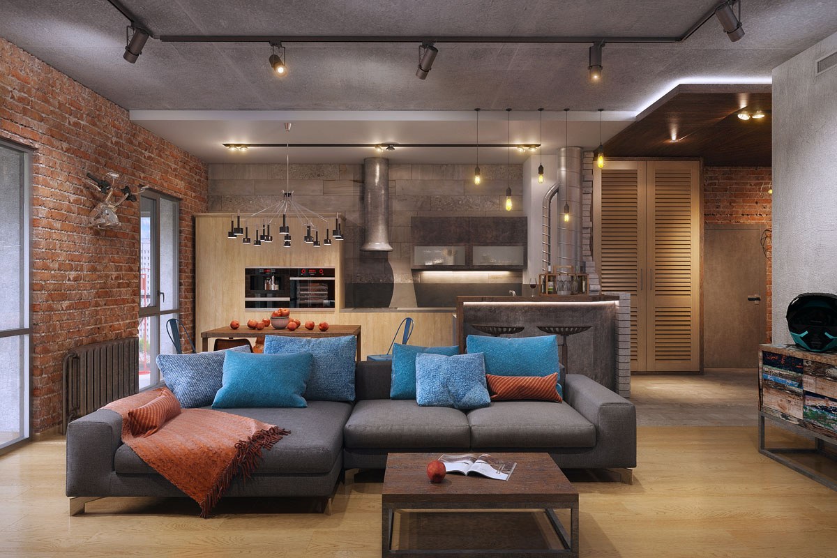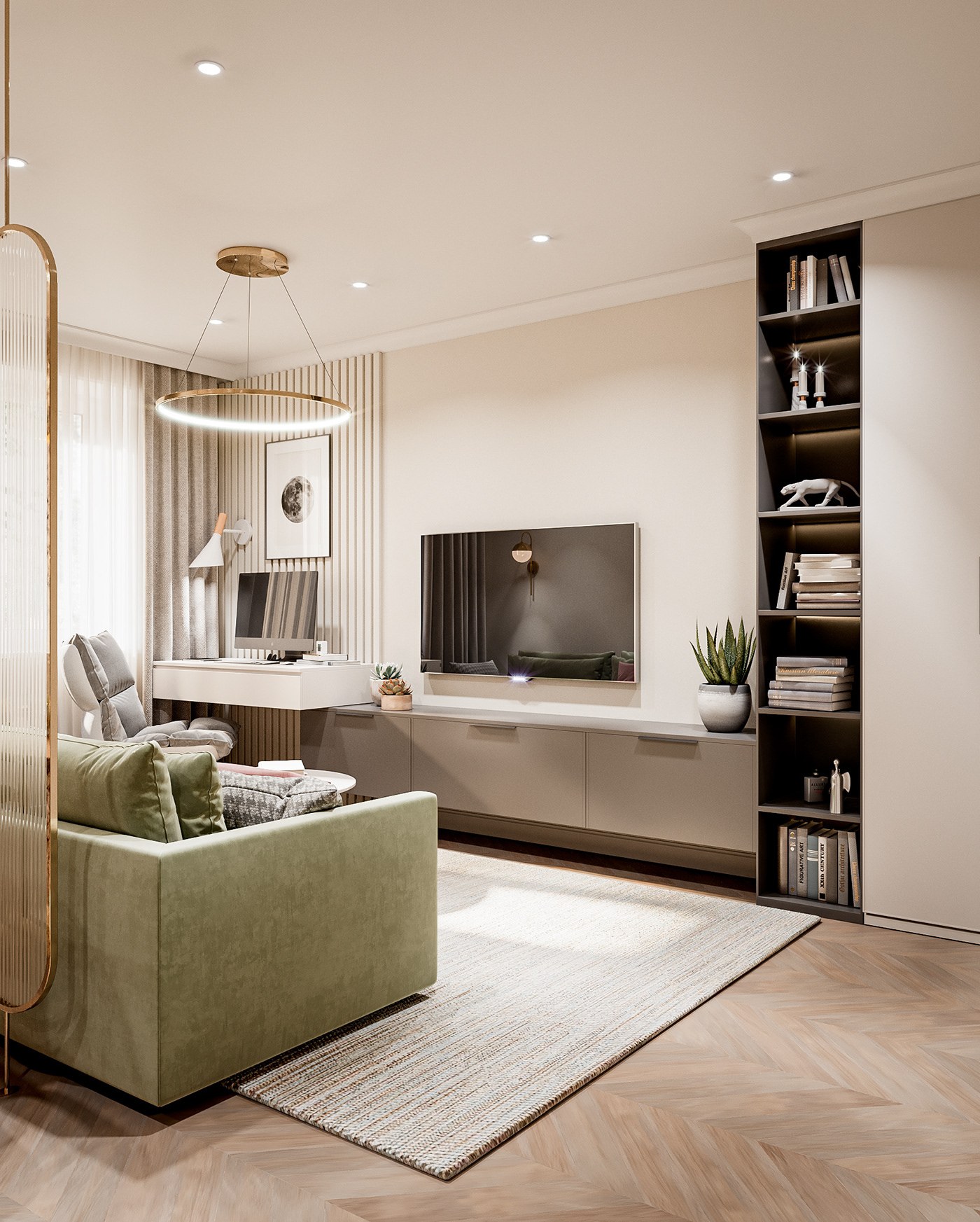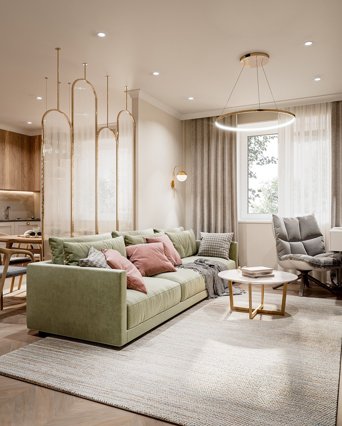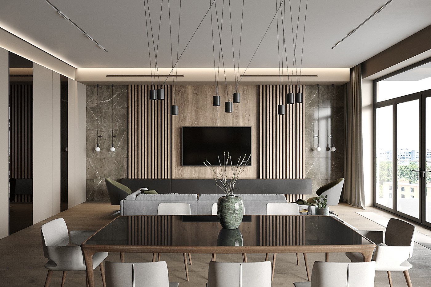 3д визуализация интерьеров Холли и совместная гостиная кухня