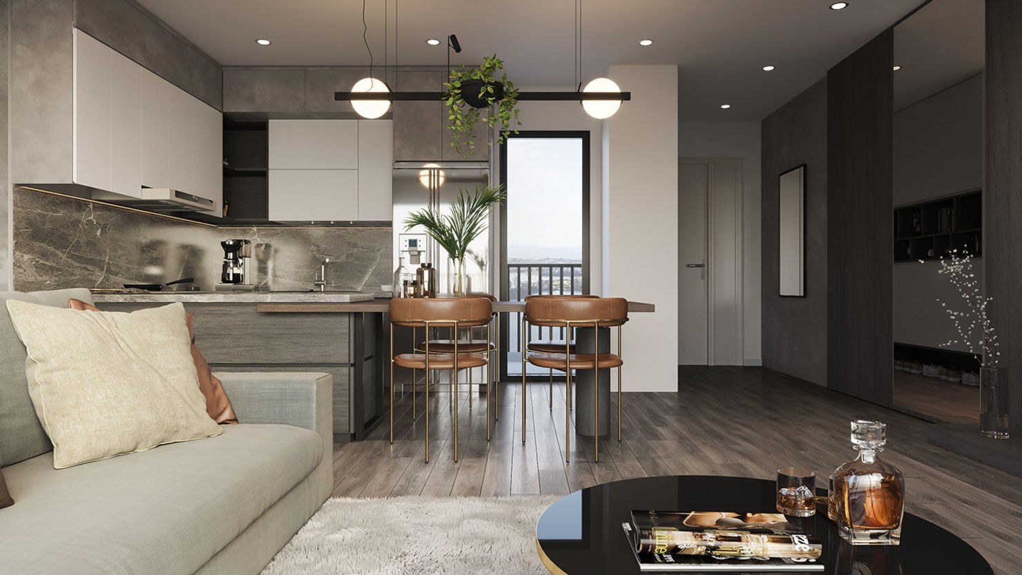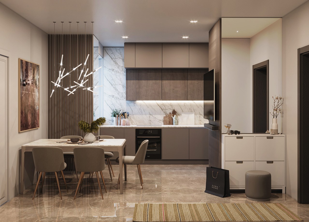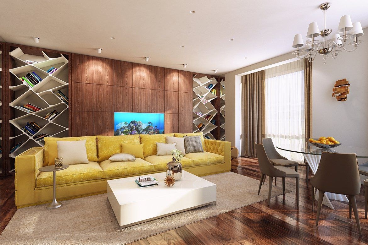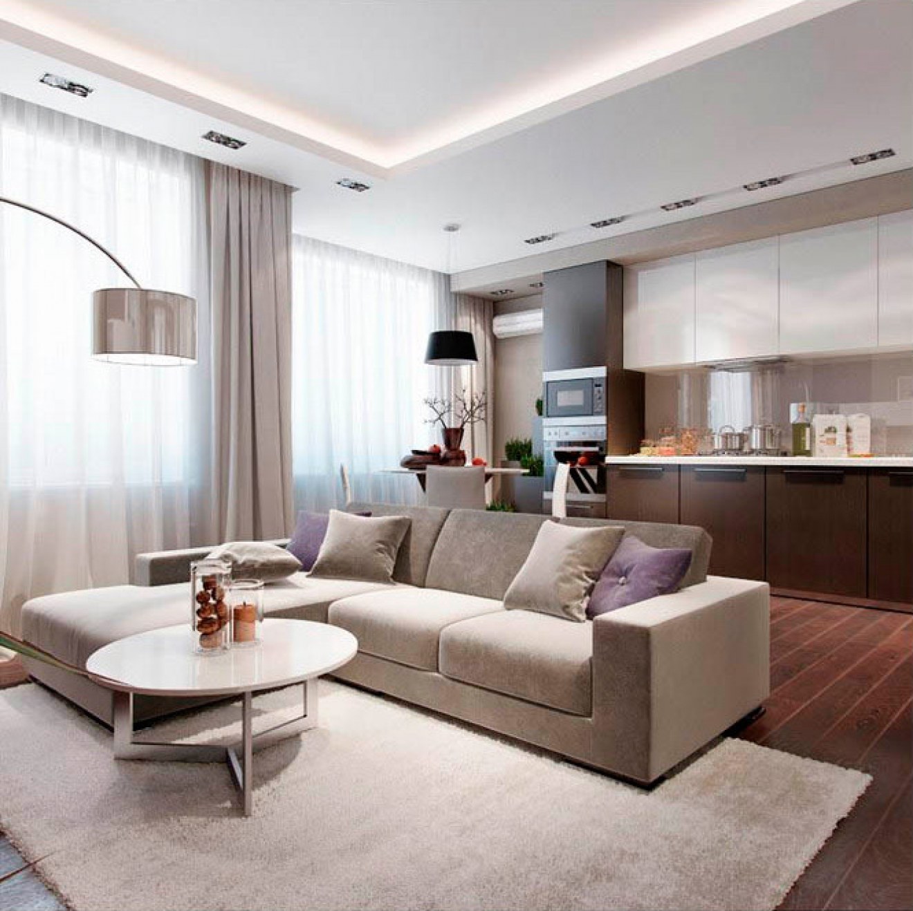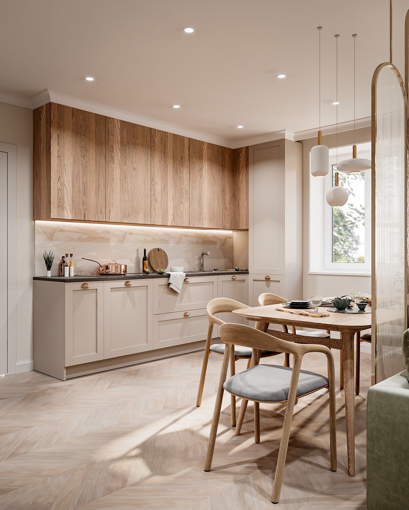 3д визуализация интерьеров Холли и совместная гостиная кухня