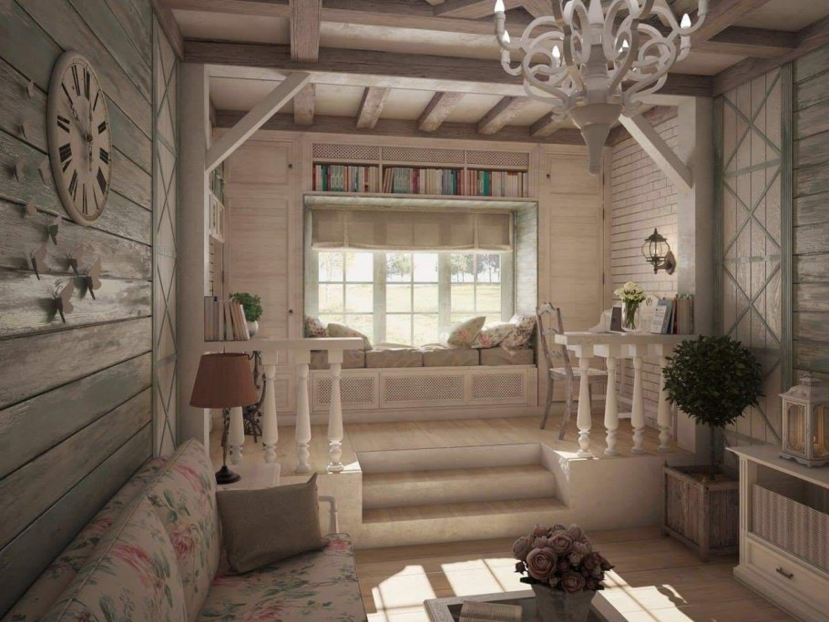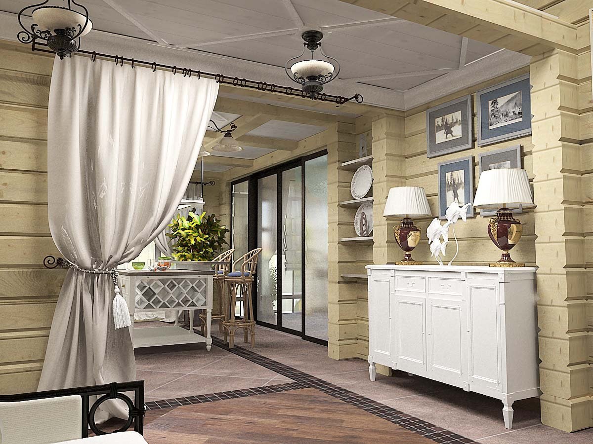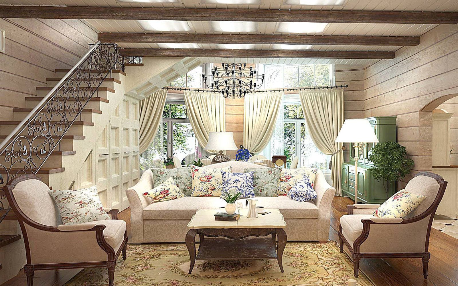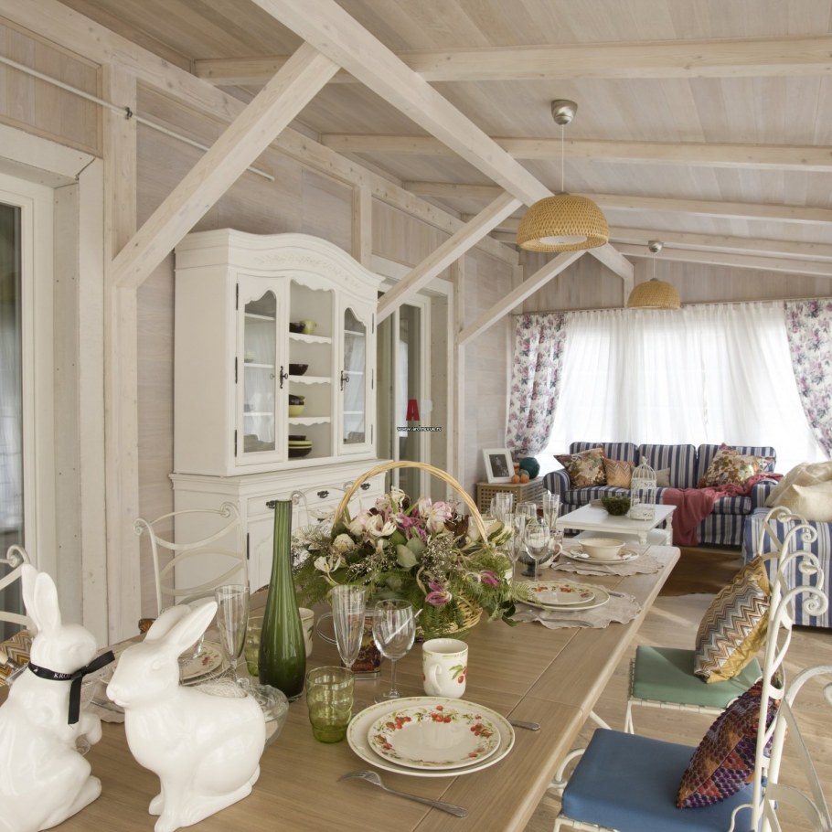 Интерьер в деревянном доме из бруса в стиле Прованс