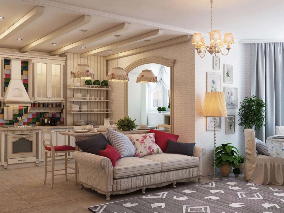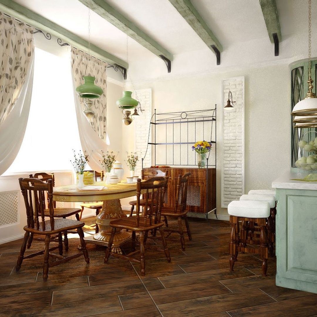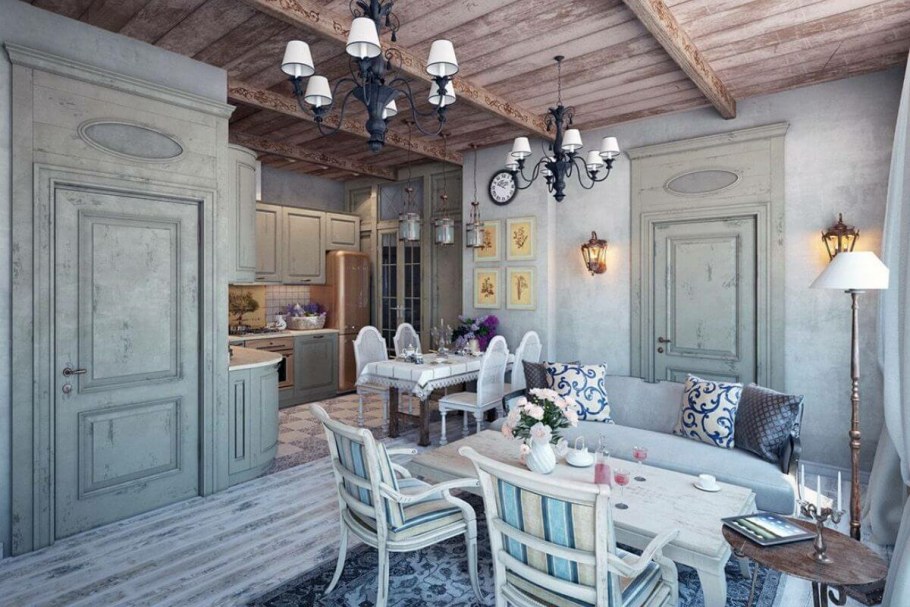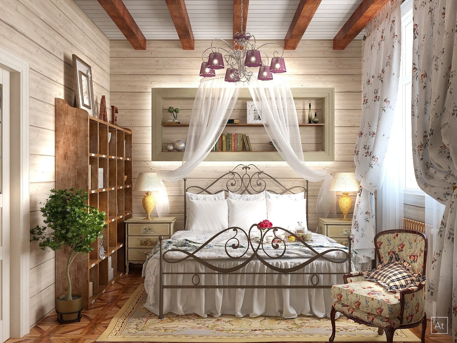 Интерьер в деревянном доме из бруса в стиле Прованс