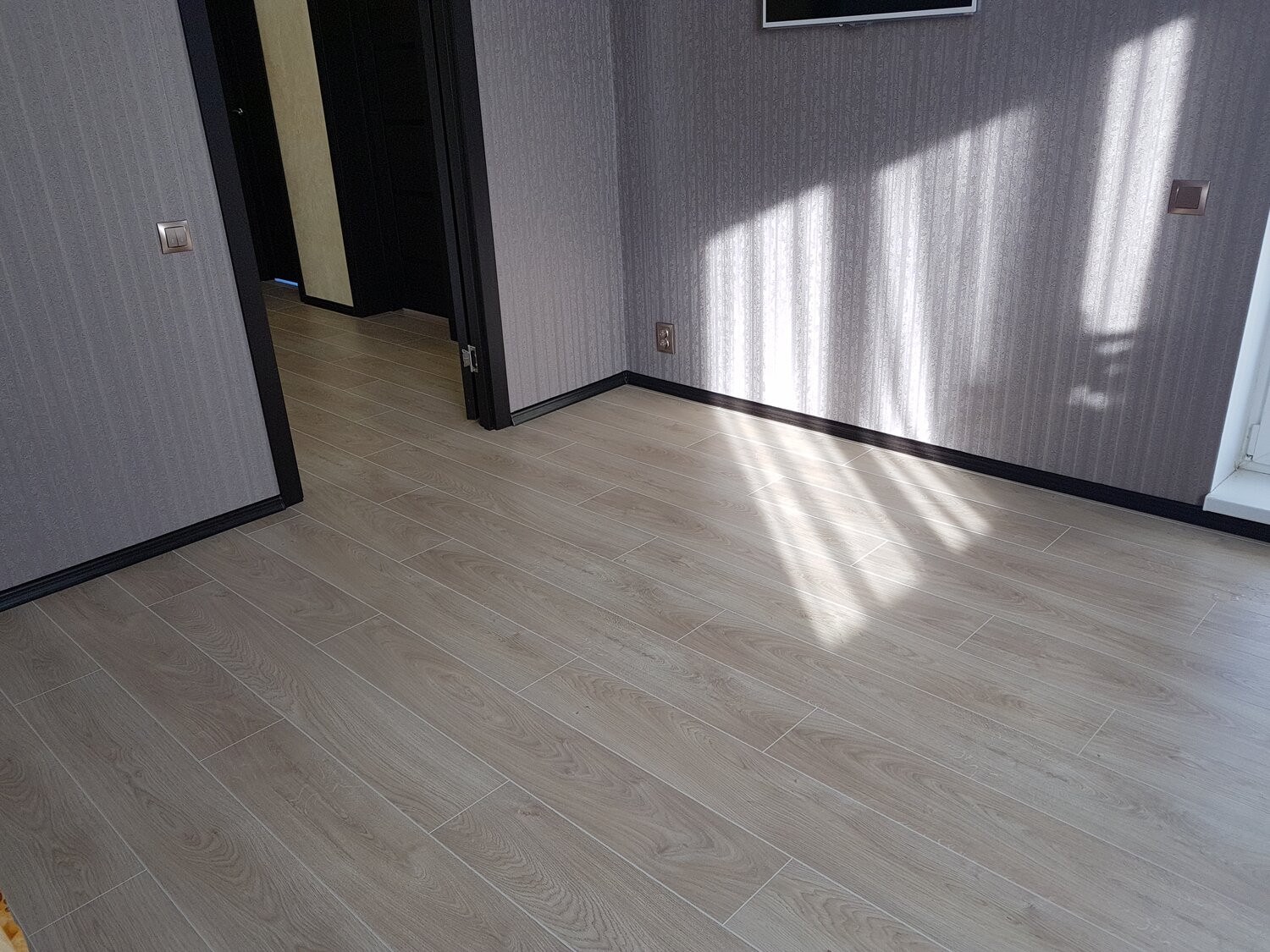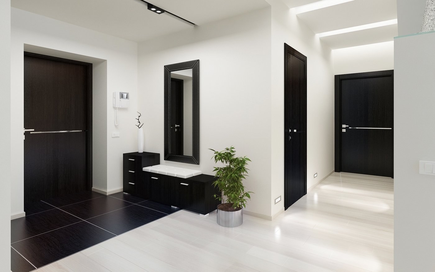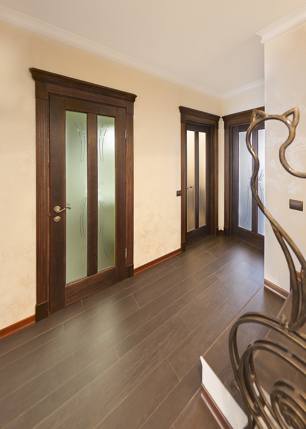 Светлый линолеум и темные двери в интерьере (79 фото)