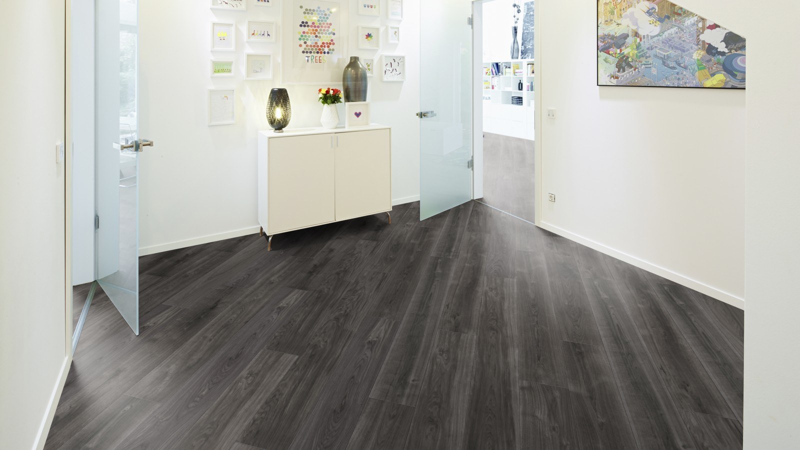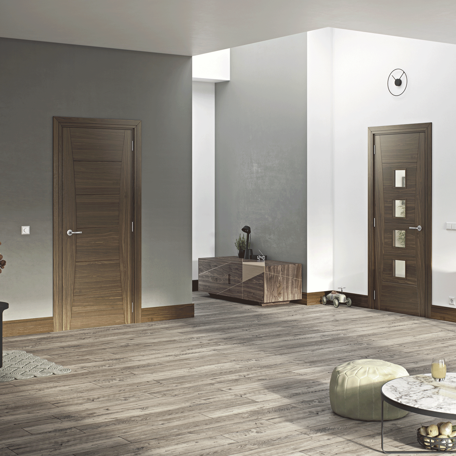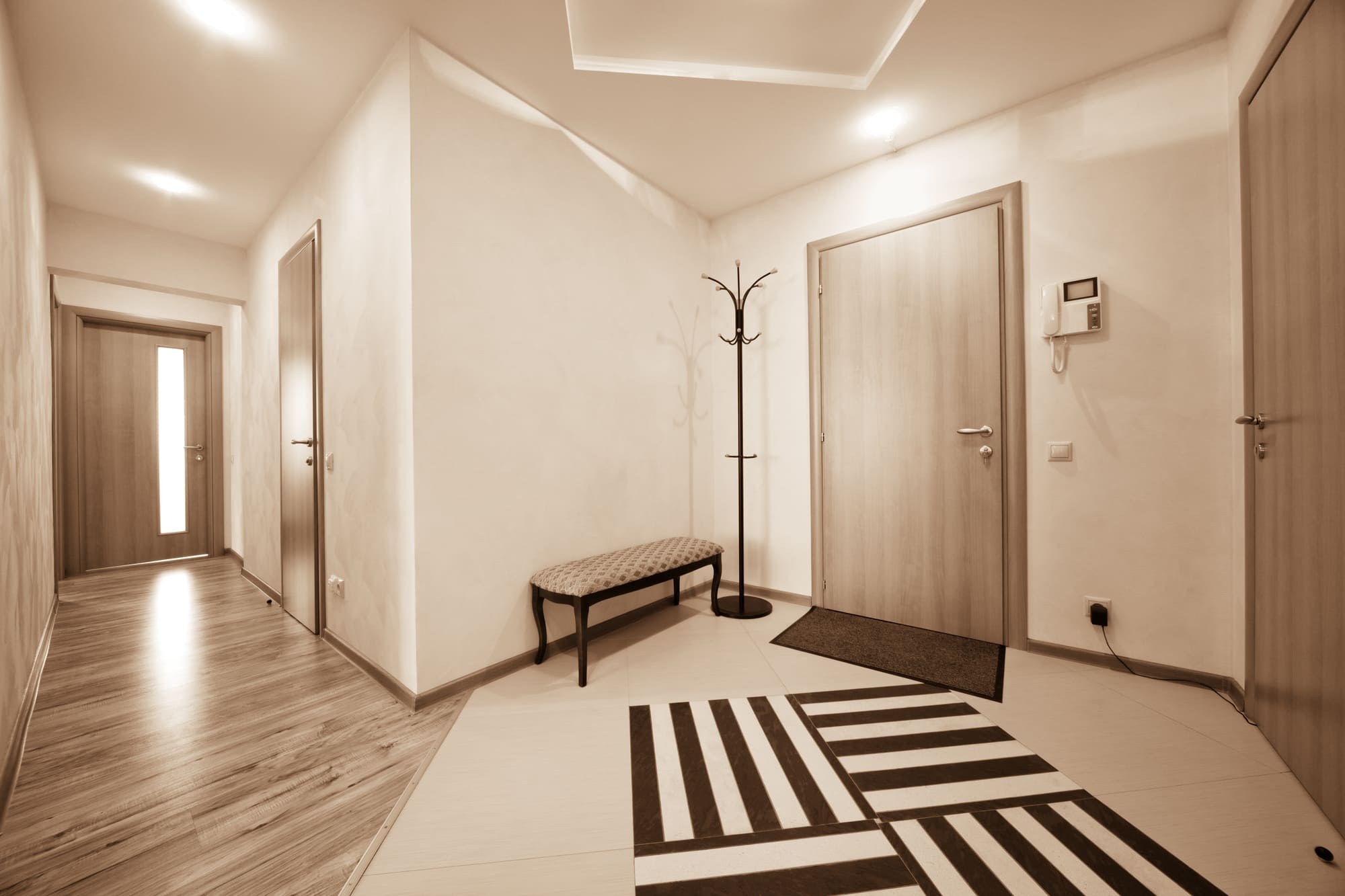 Светлый линолеум и темные двери в интерьере (79 фото)