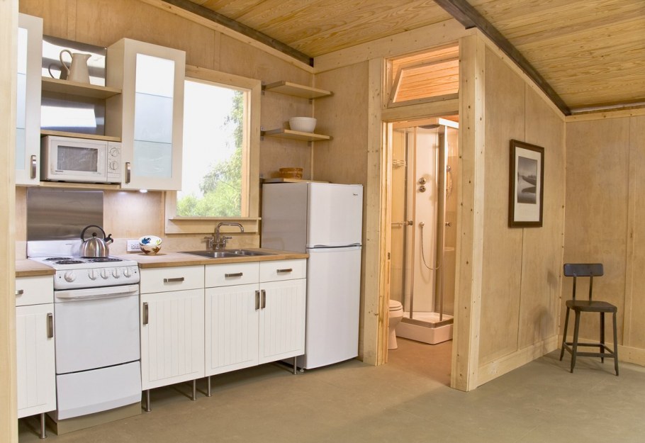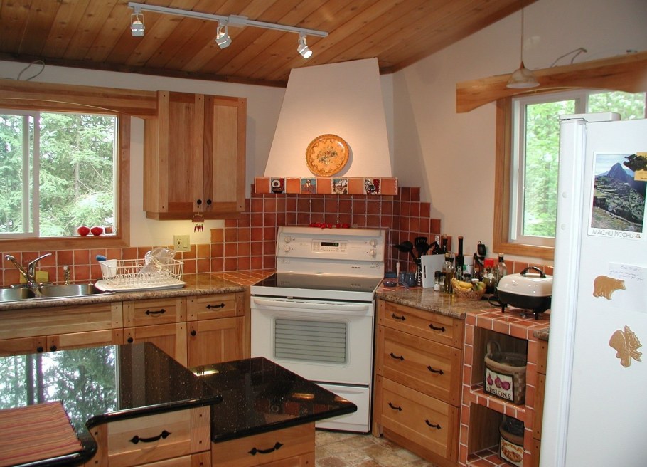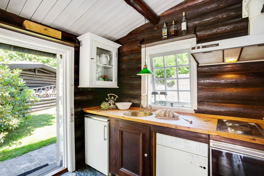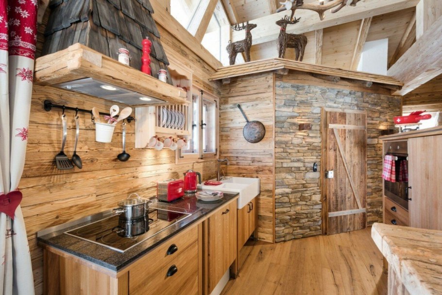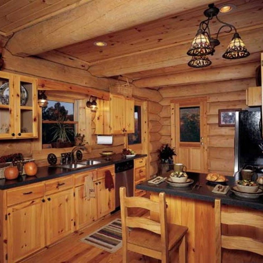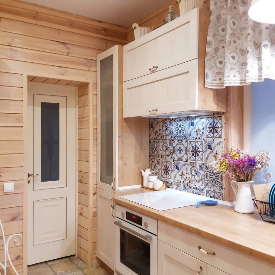 Кухня-гостиная бревенчатого дома в стиле Прованс