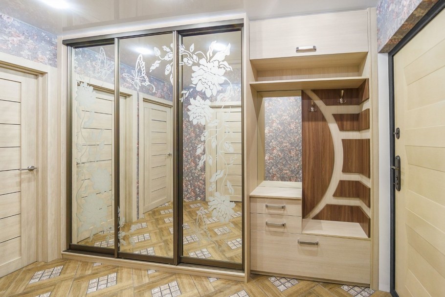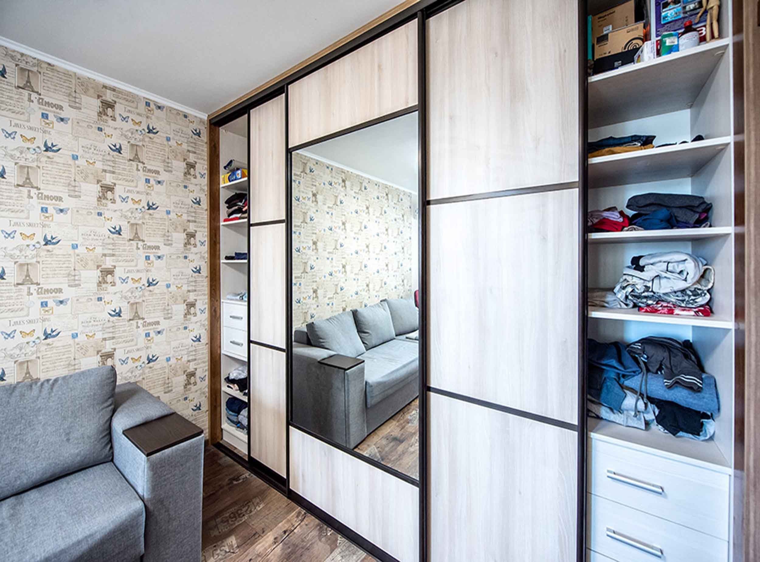Шкаф купе с разной глубиной в интерьере (80 фото)