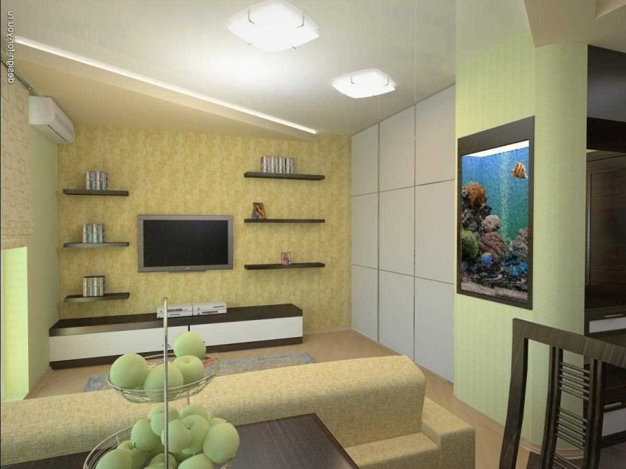 Интерьер в маленькой комнате гостиной
