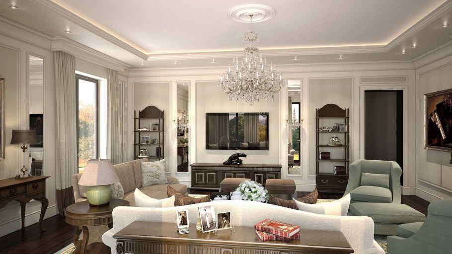 Линкруста в интерьере гостиной в стиле Неоклассика