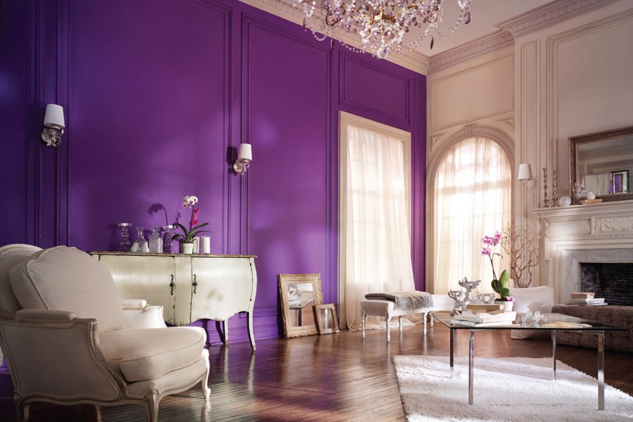Фиолетовые стены в интерьере