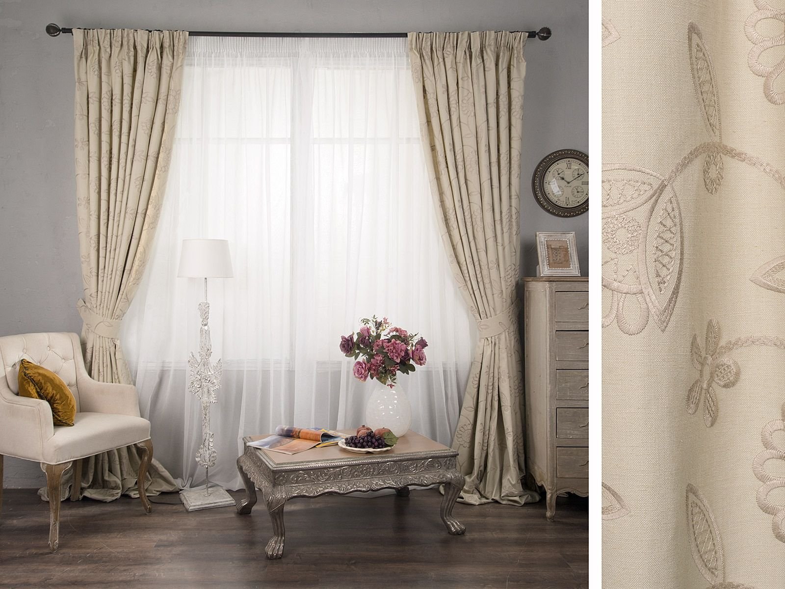 Шторы молочного цвета и белая тюль