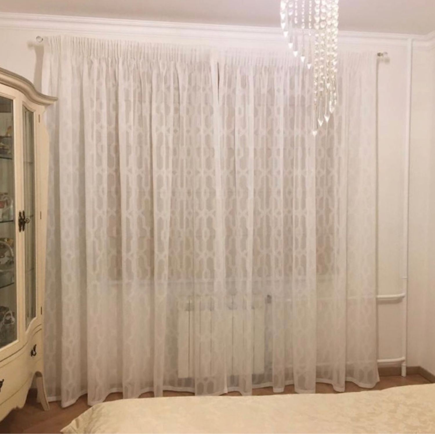 Белые шторы в интерьере спальни