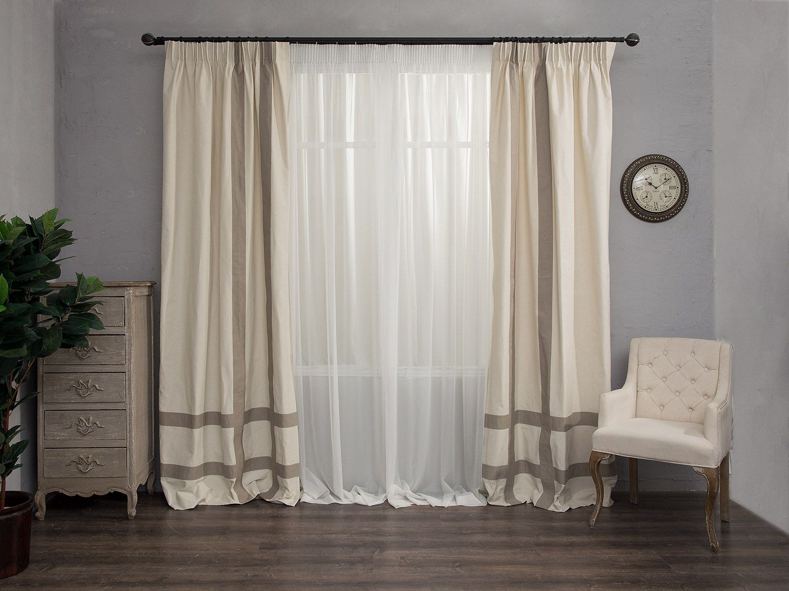Бежевые шторы с белой тюлью