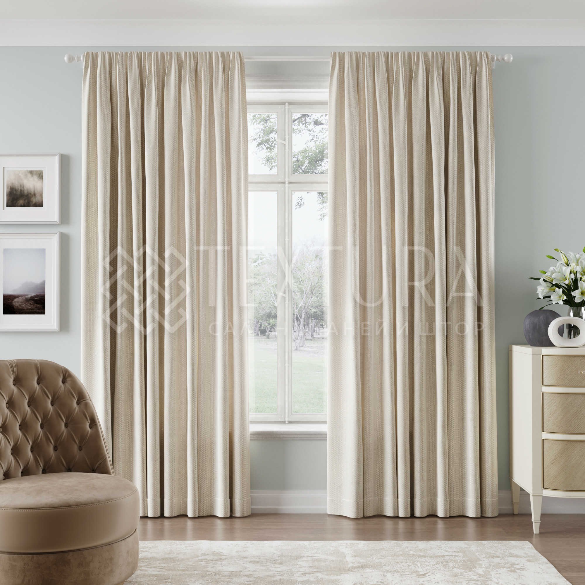 Шторы в гостиную в светло бежевых тонах