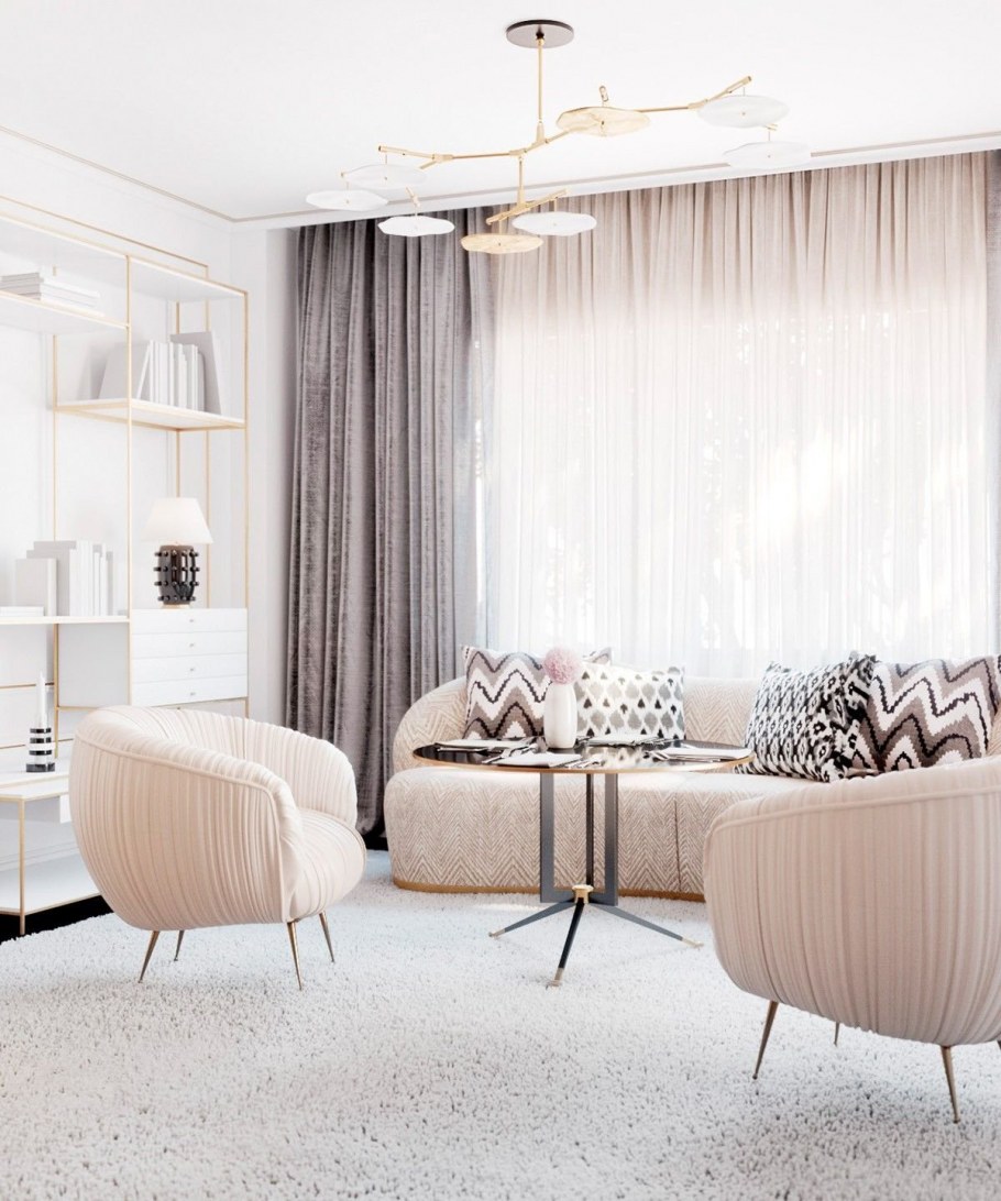 Молочные шторы в интерьере гостиной