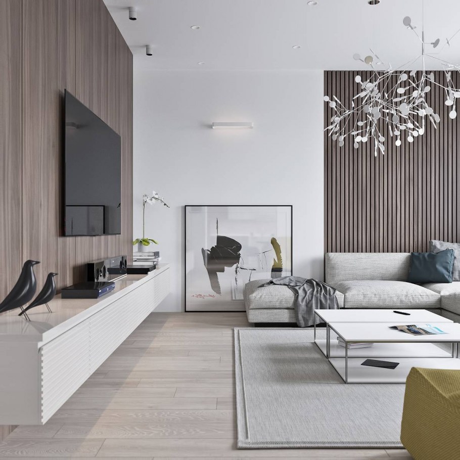 Современный светлый интерьер с элементами дерева