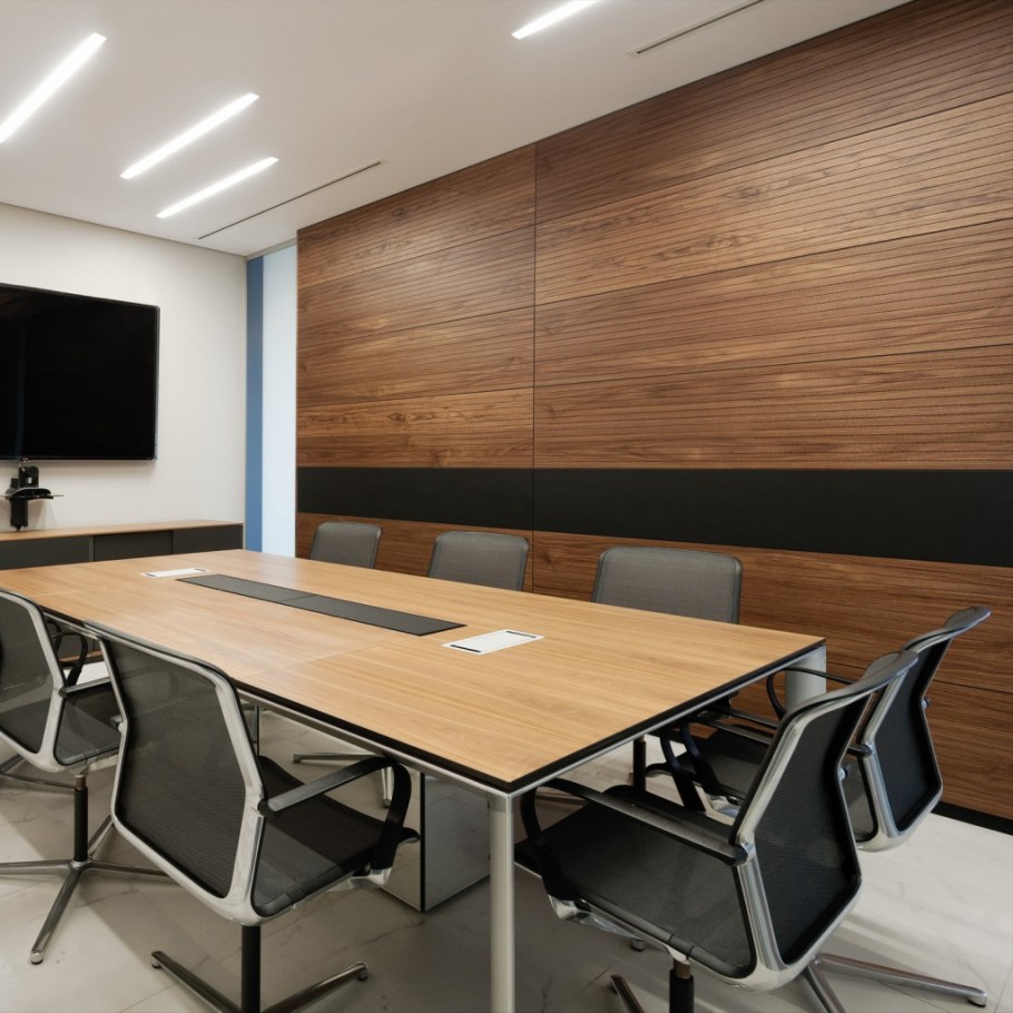 Деревянные панели в офисе