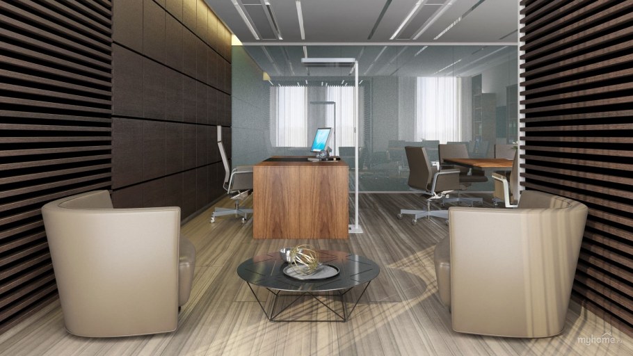 Деревянные панели в интере офис