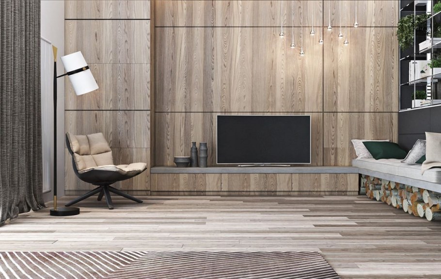 Ламинат на стене в интерьере