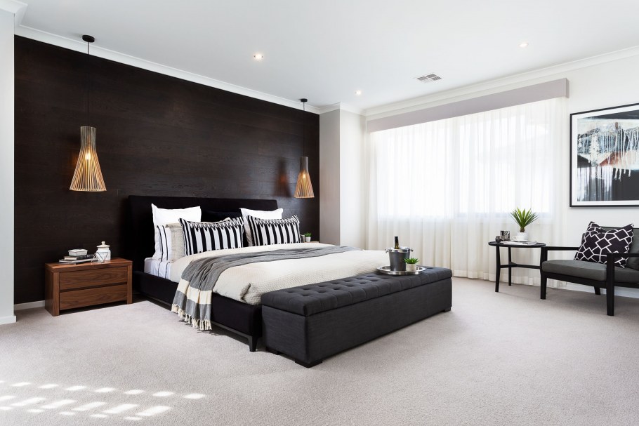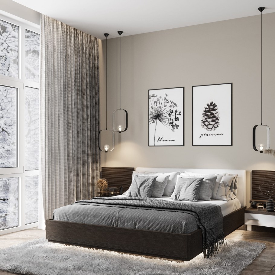 Современная спальня с темной мебелью