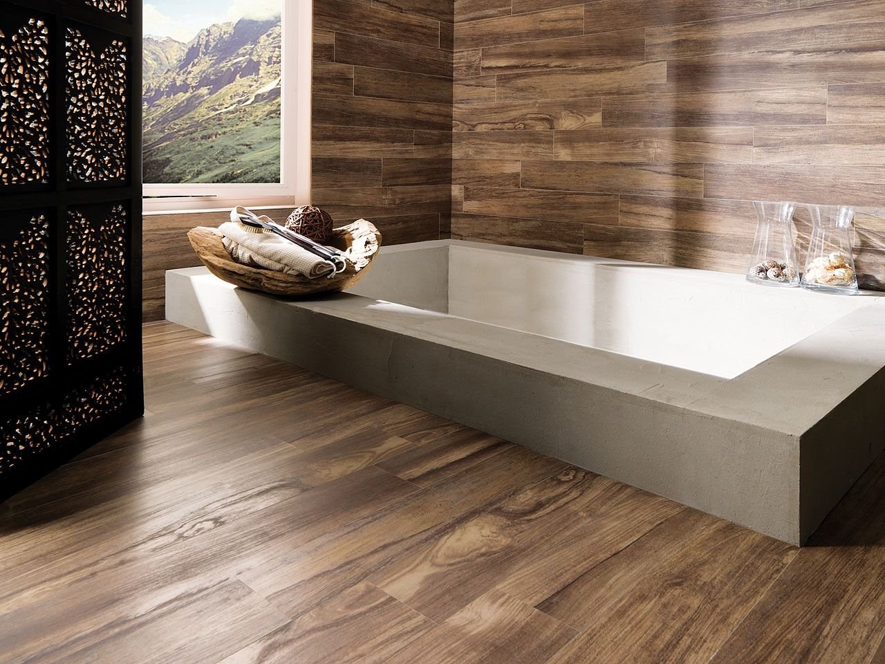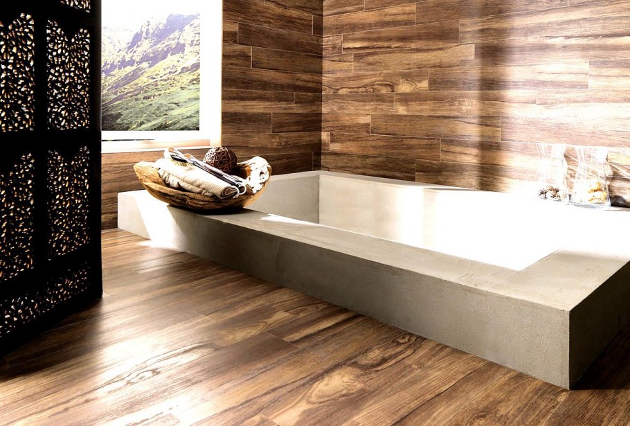 Ванна с плиткой под дерево