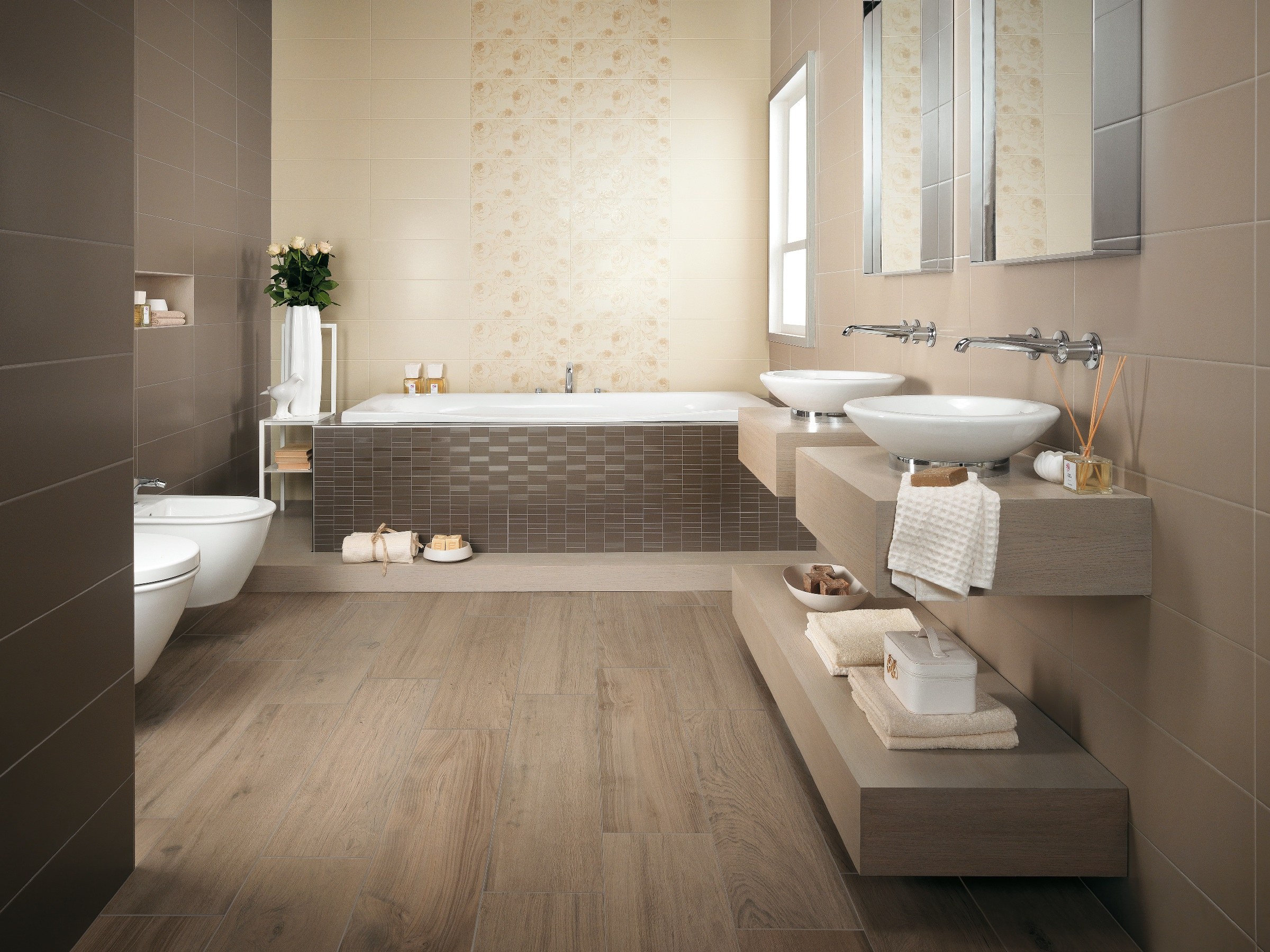 Ванная с плиткой под дерево