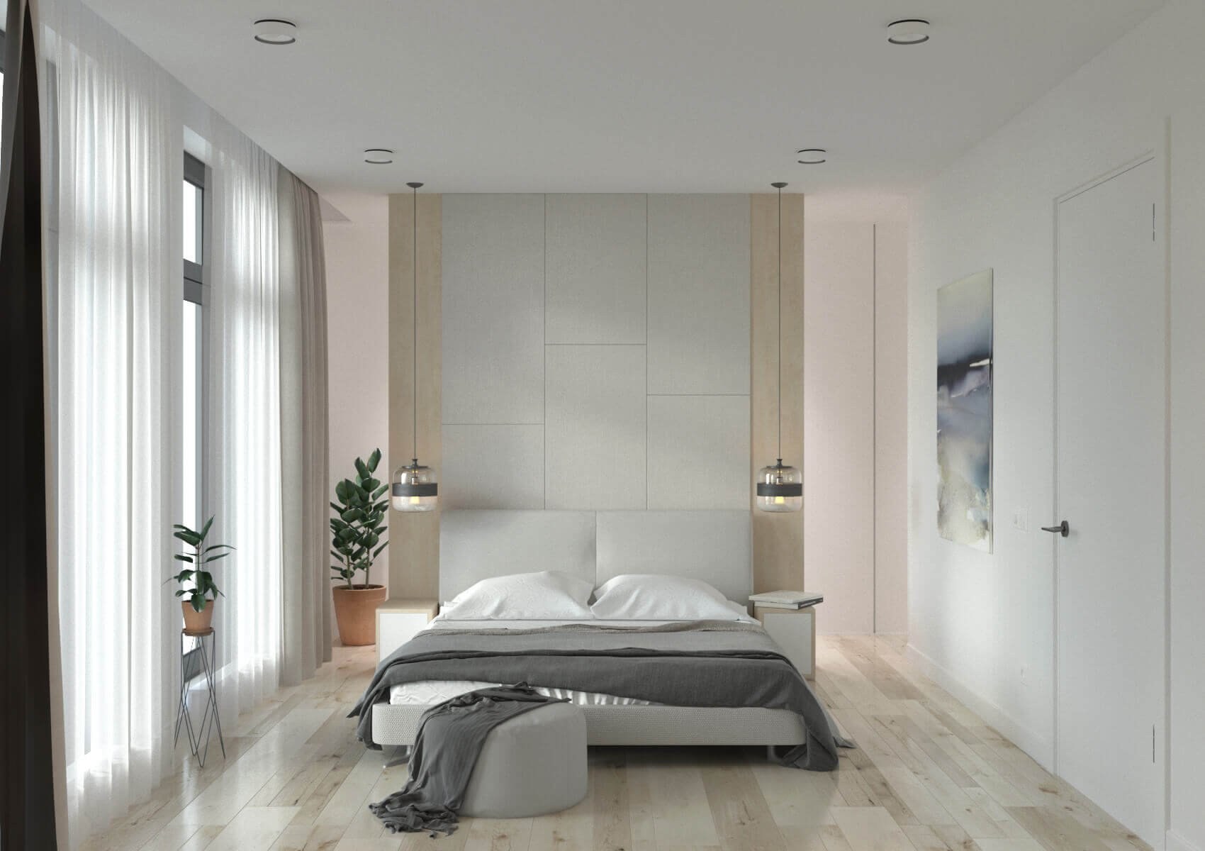 Спальня в стиле минимализм в светлых тонах (79 фото)