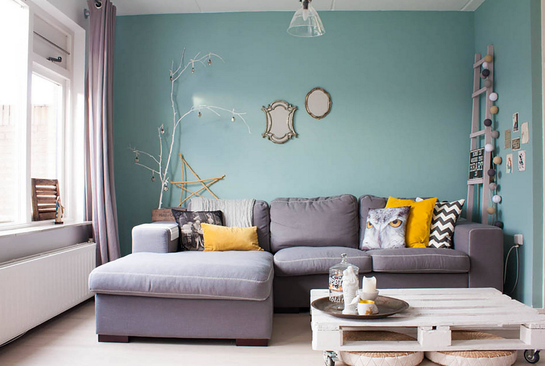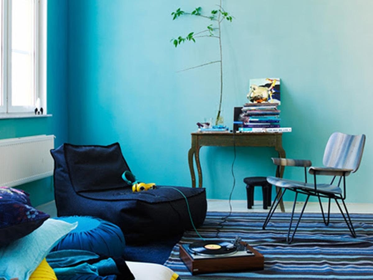 Гостиная с бирюзовыми стенами