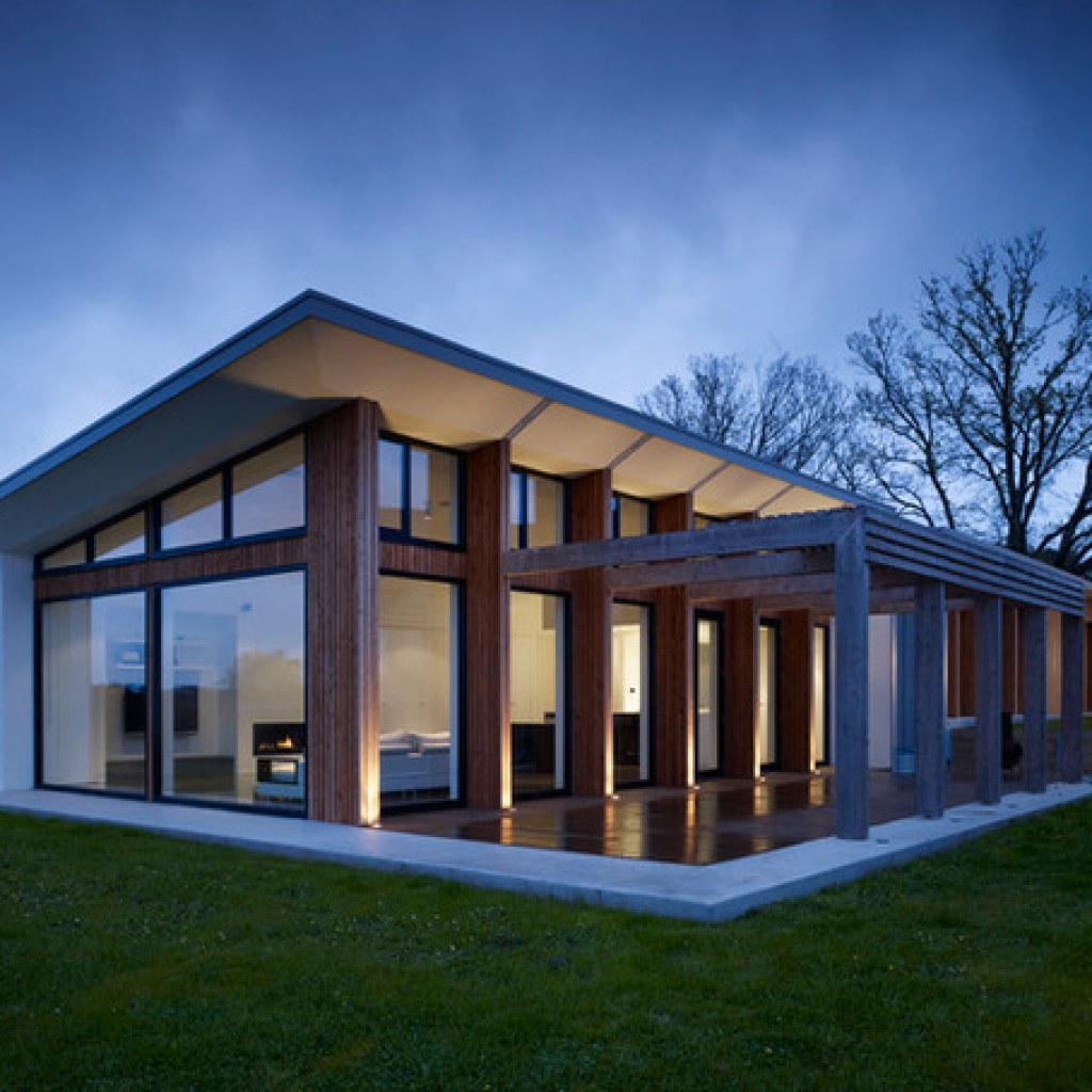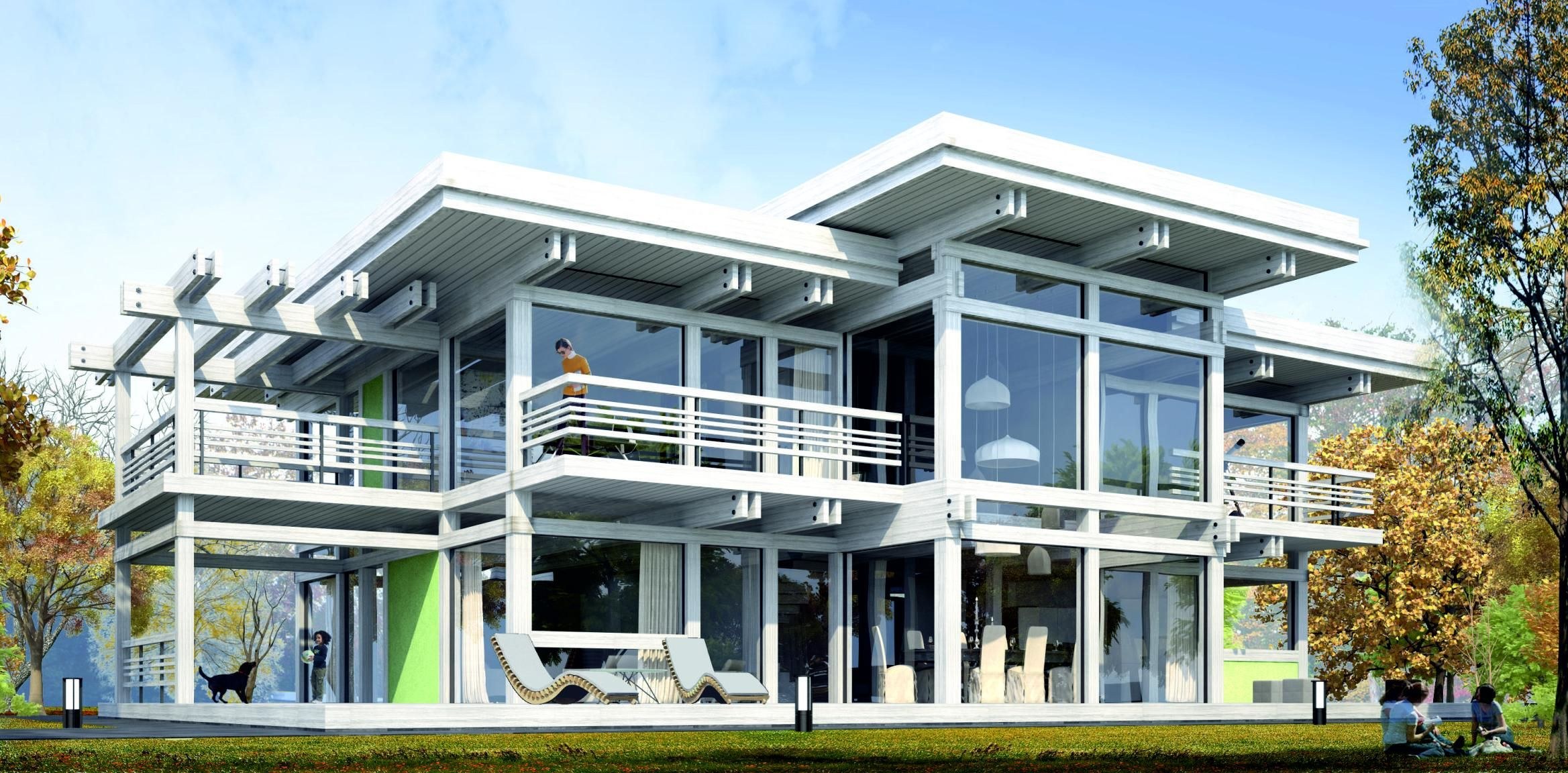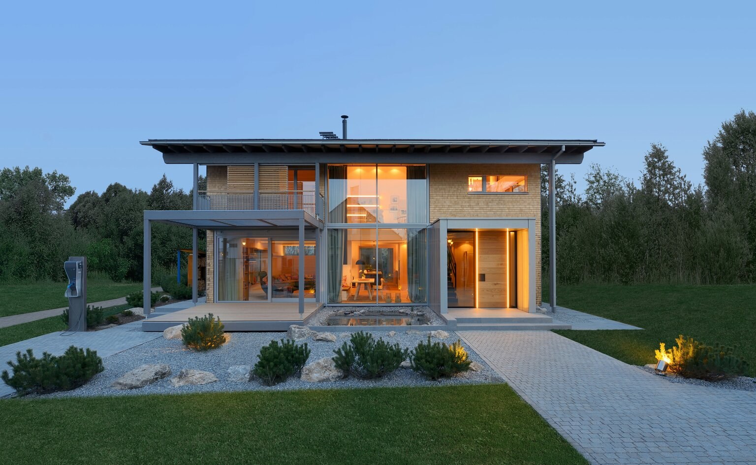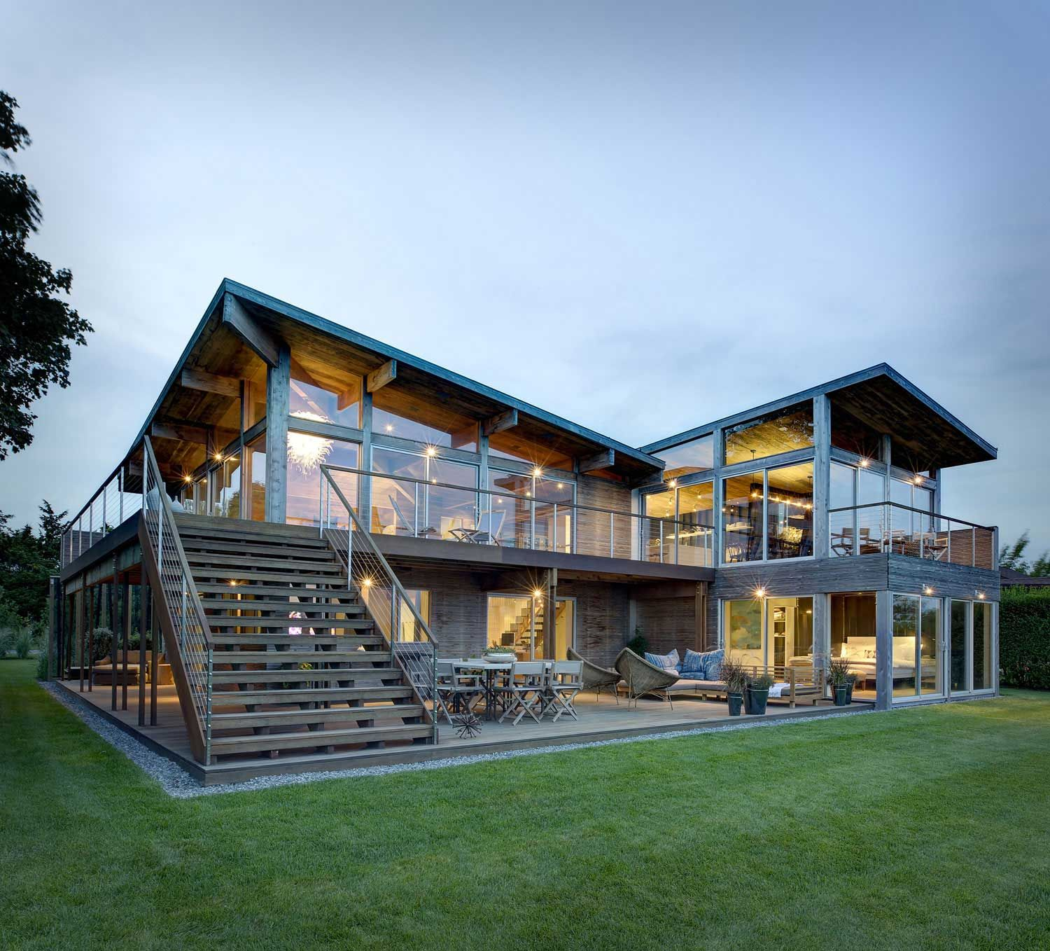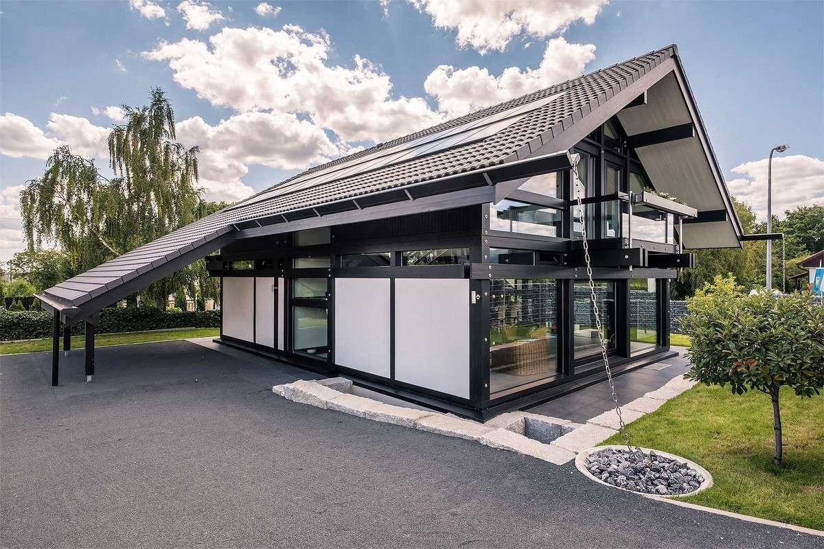 Двухэтажный дом с односкатной крышей в стиле Модерн