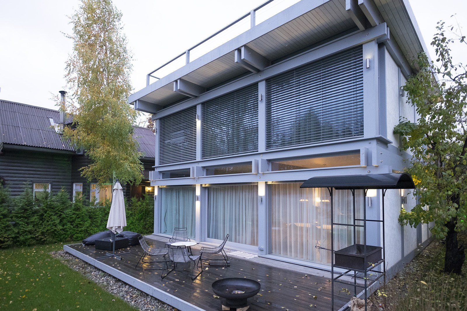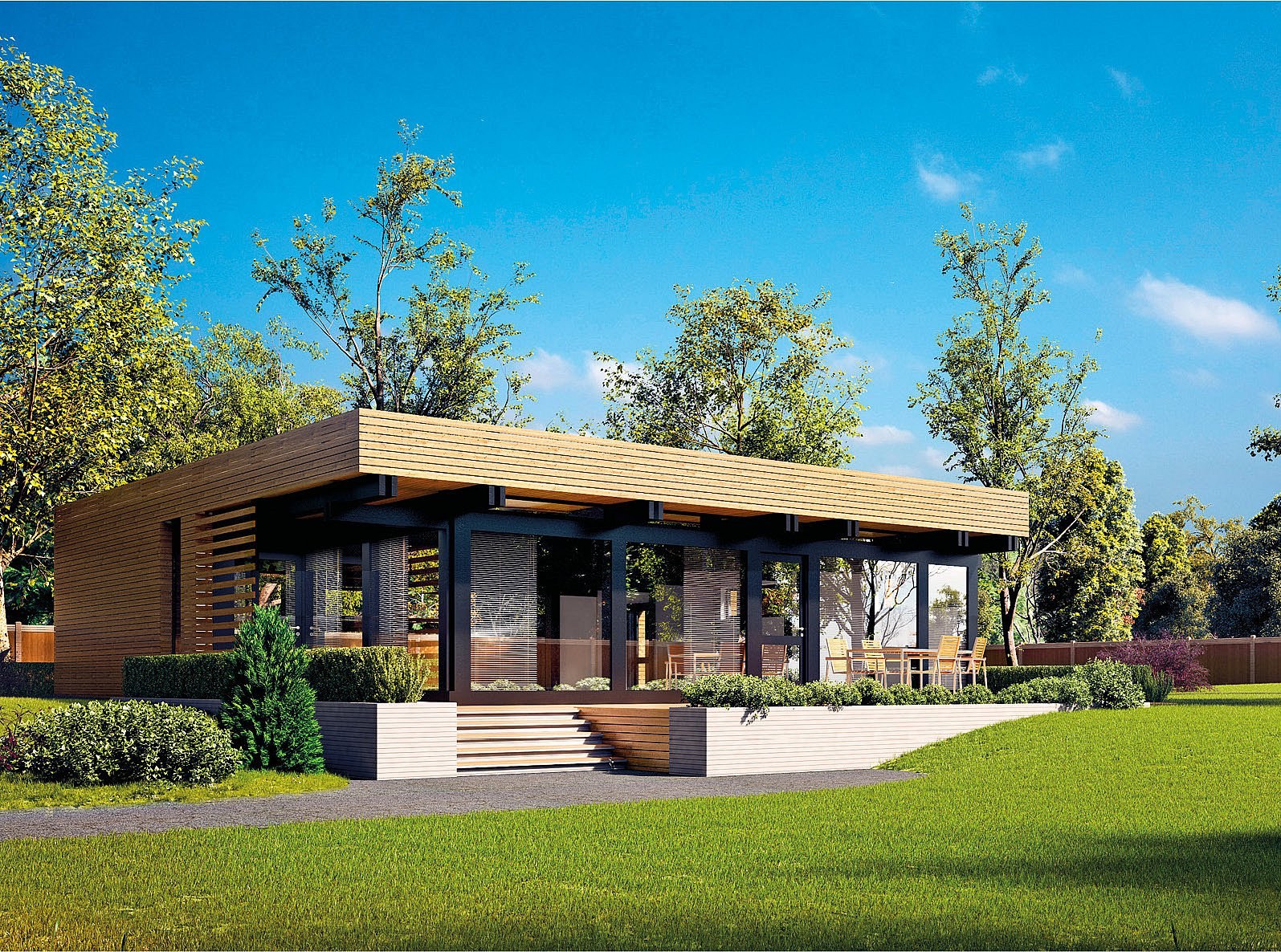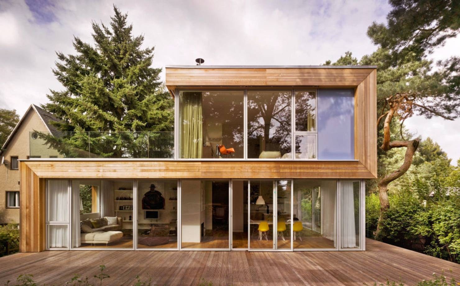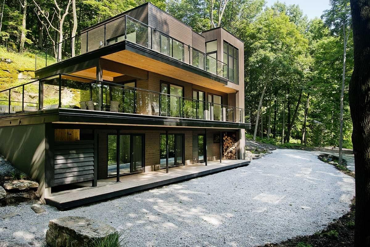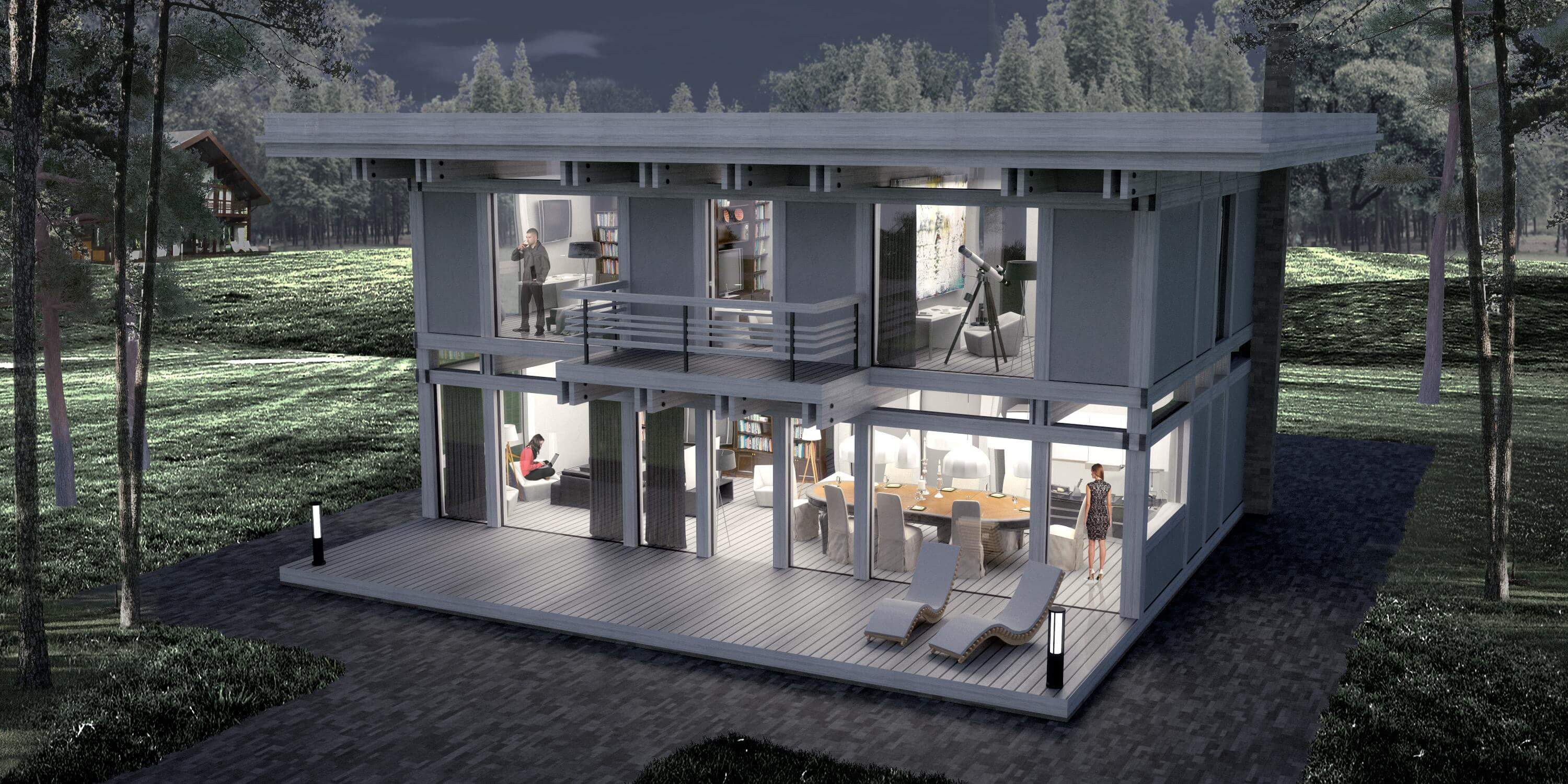 Двухэтажный дом с односкатной крышей в стиле Модерн