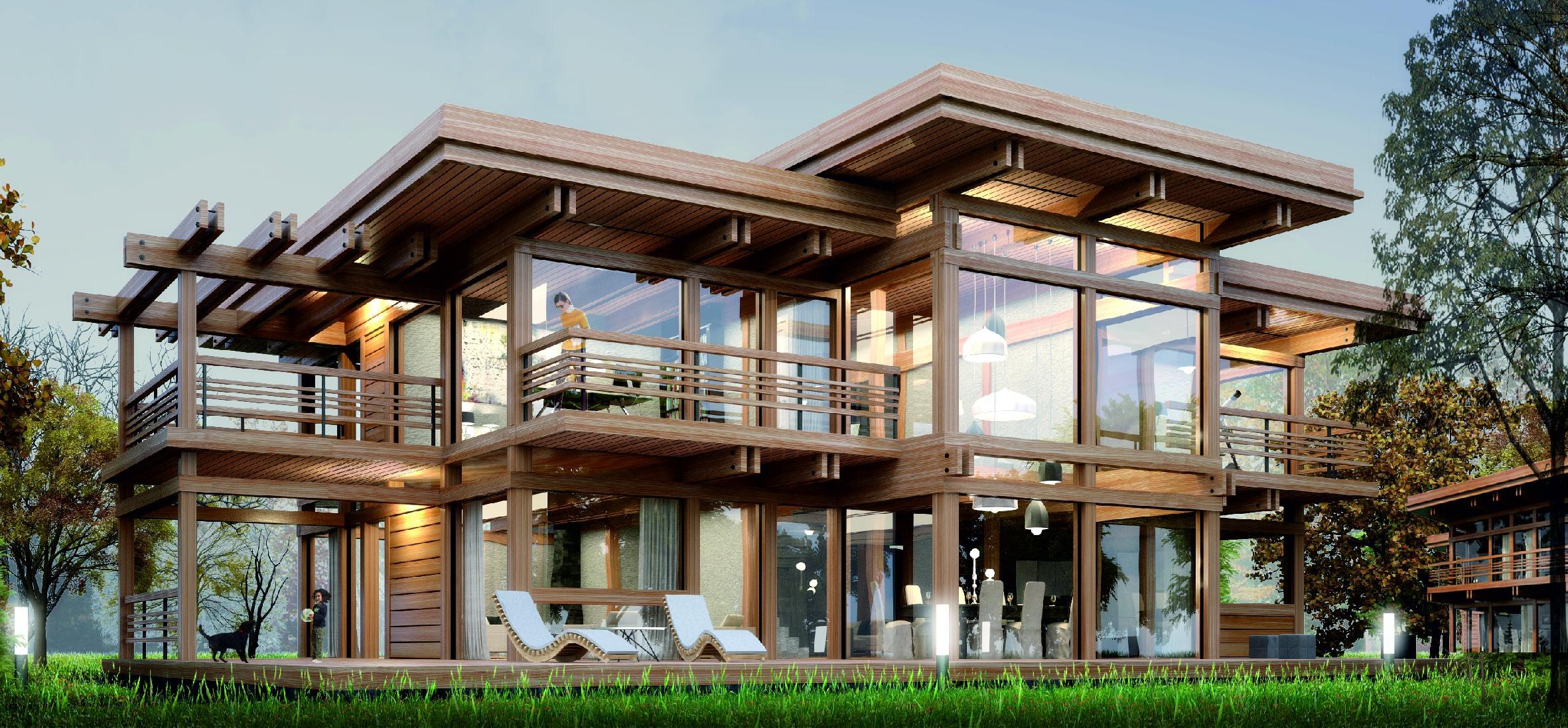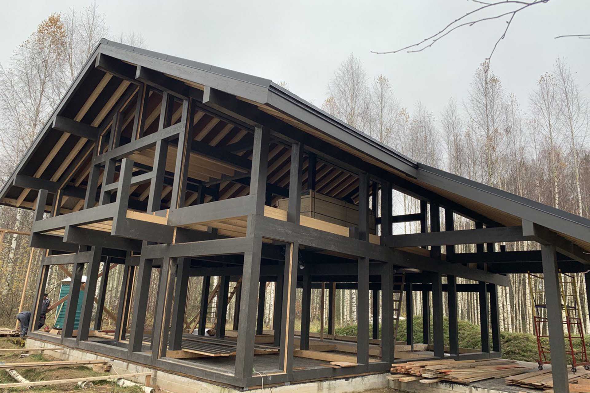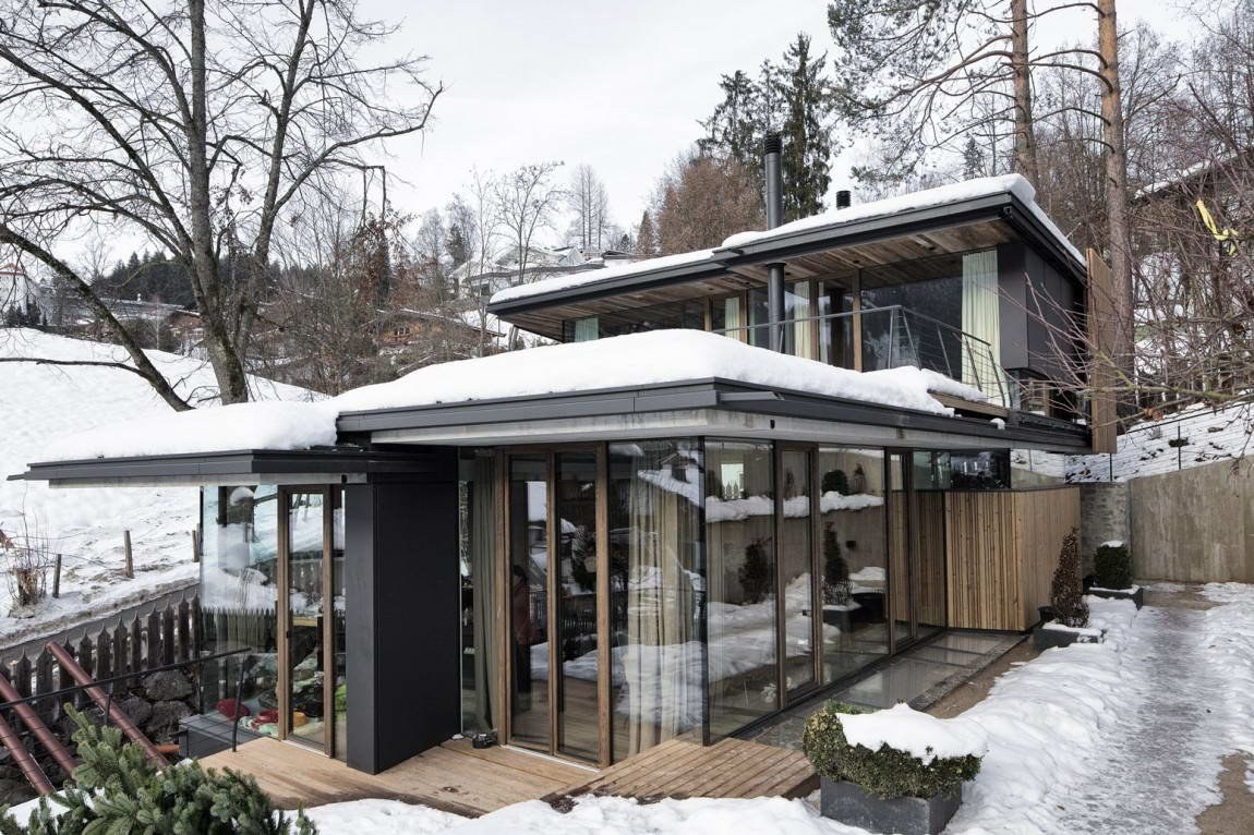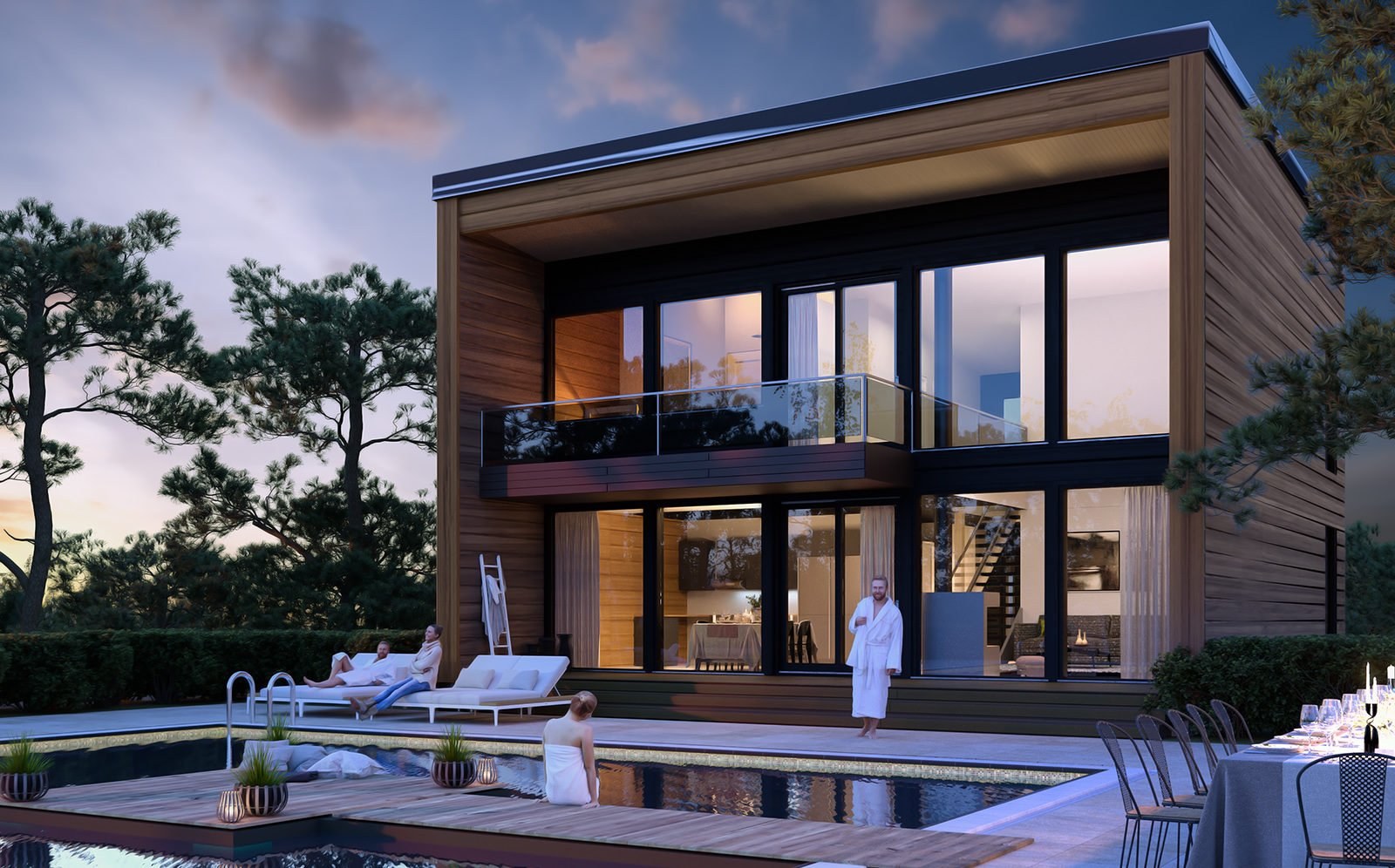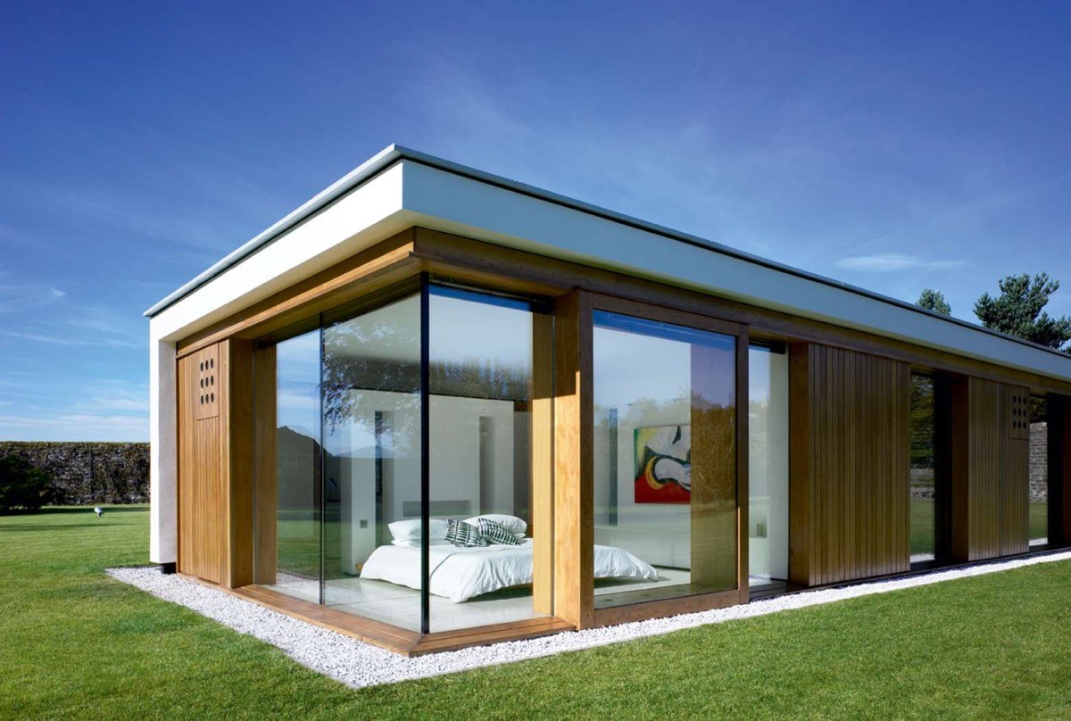 Двухэтажный дом с односкатной крышей в стиле Модерн