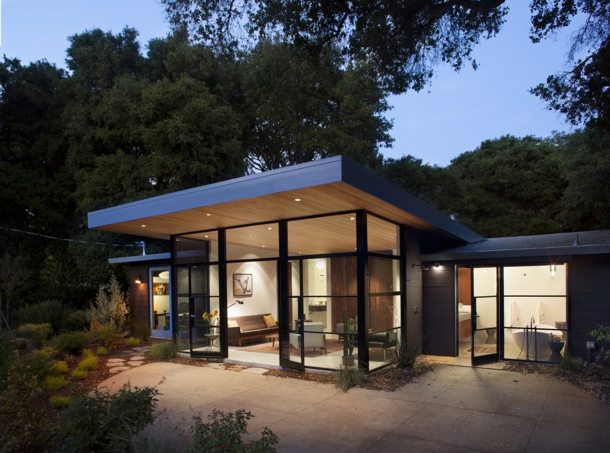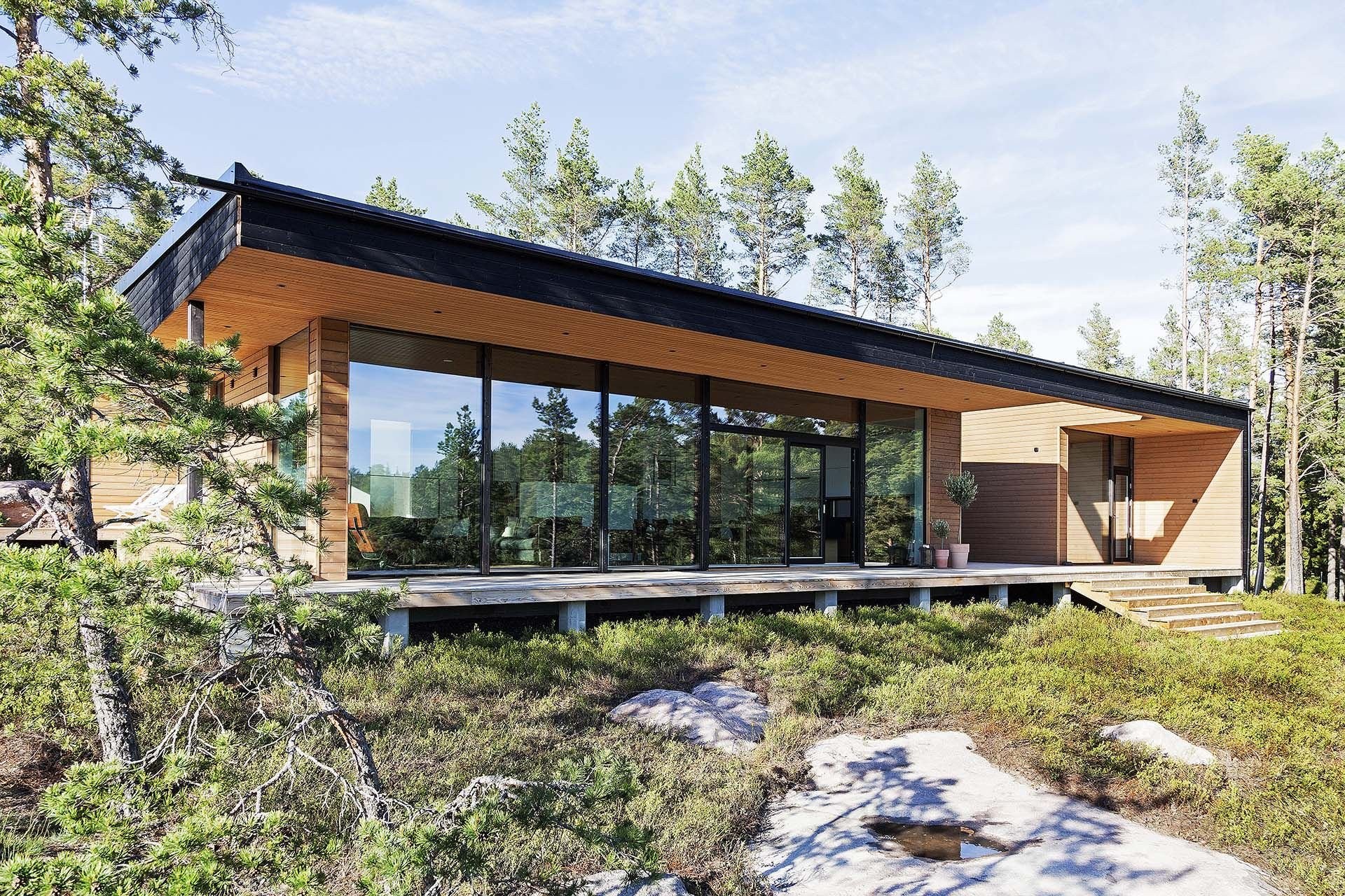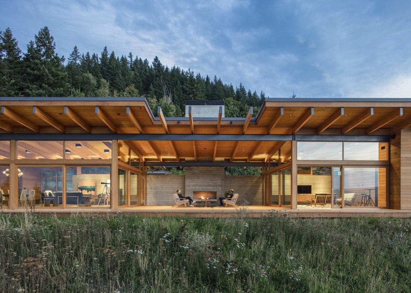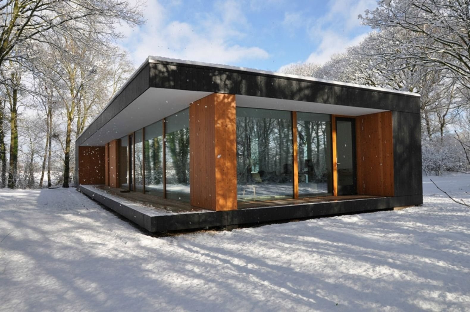 Двухэтажный дом с односкатной крышей в стиле Модерн