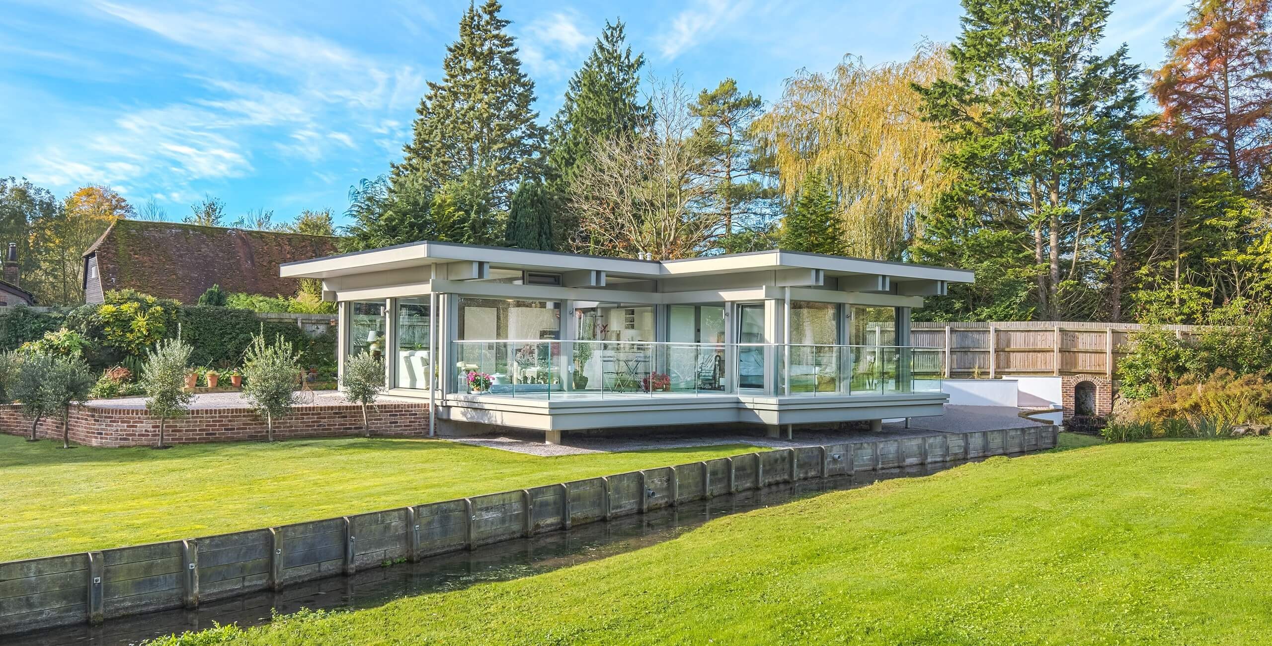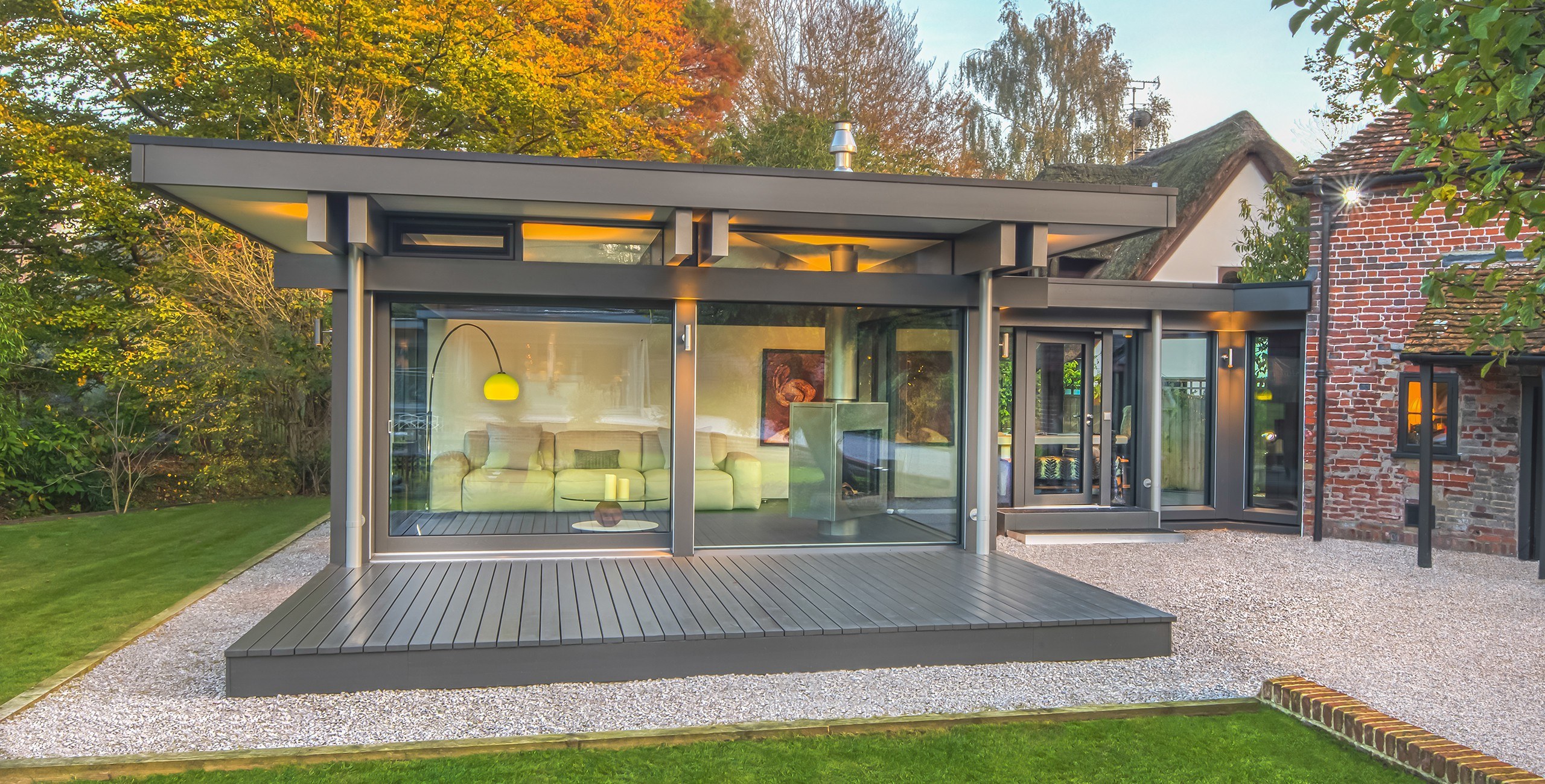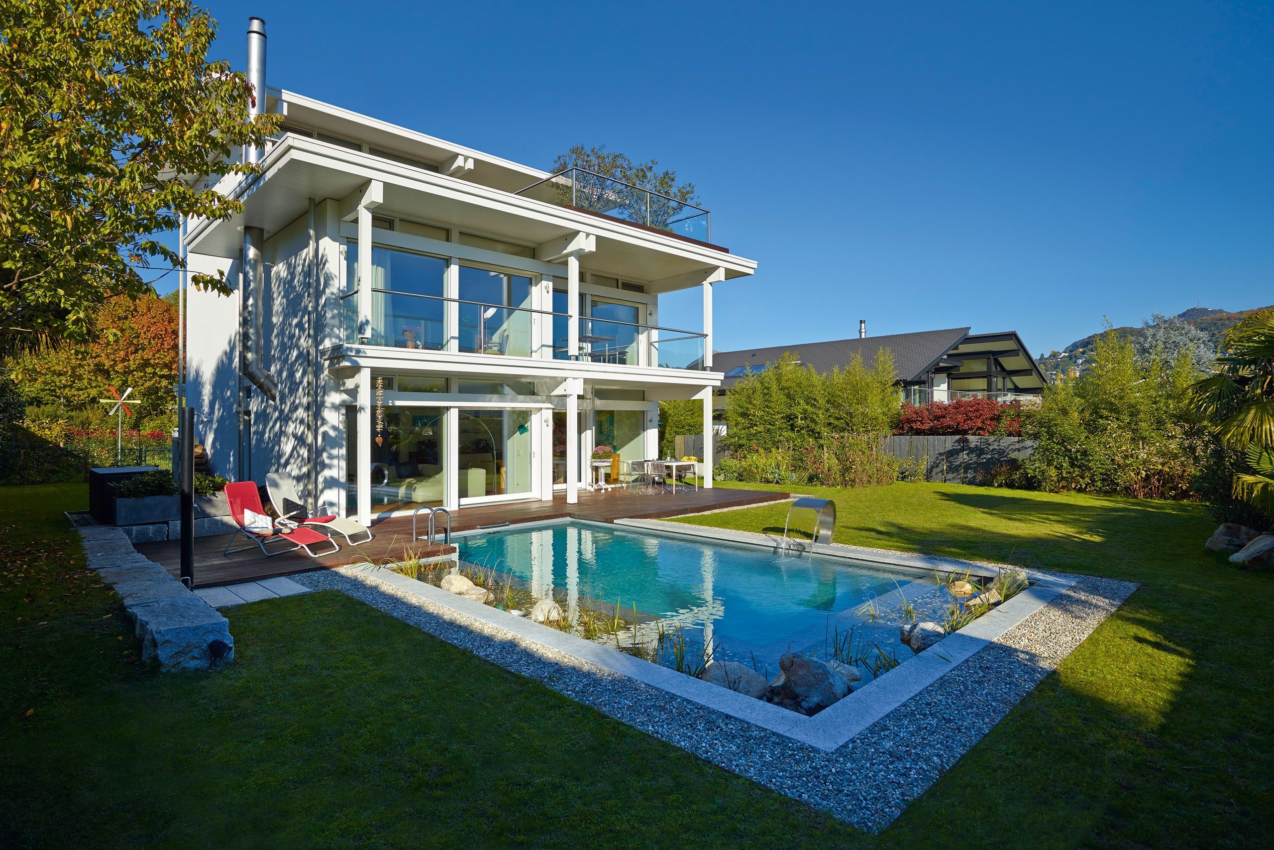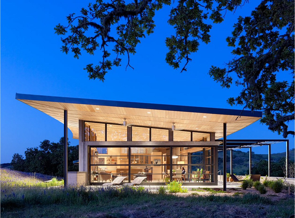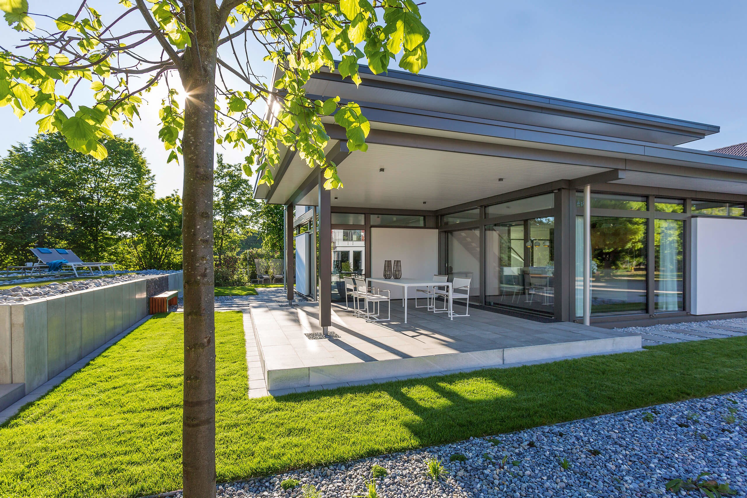 Двухэтажный дом с односкатной крышей в стиле Модерн