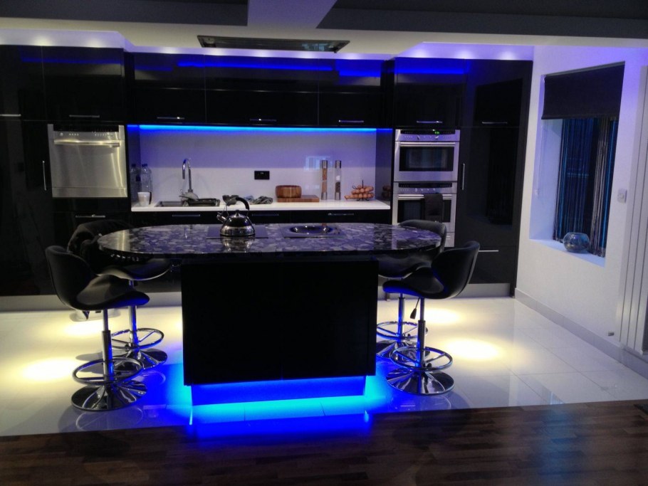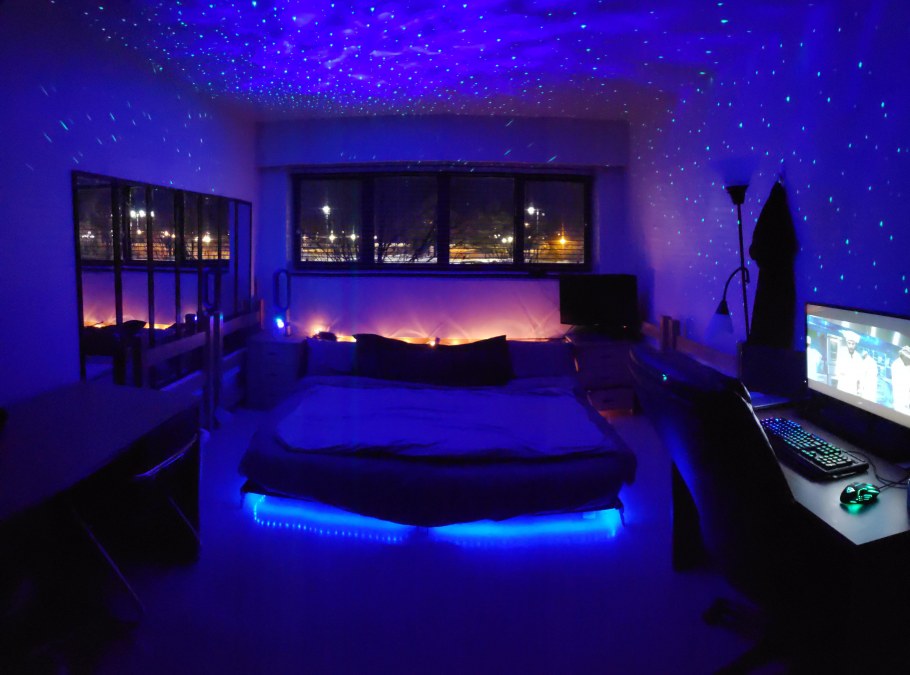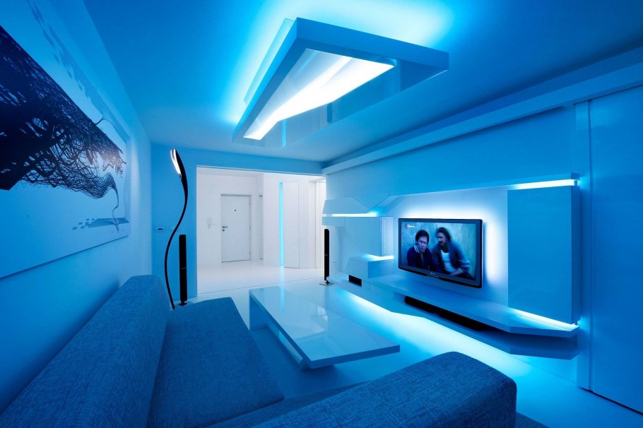 Стеклянная перегородка в комнату для зонирования с подсветкой