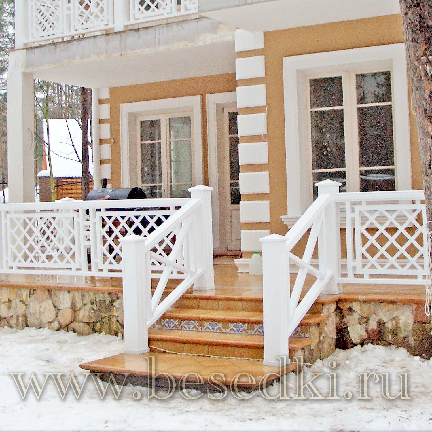Крыльцо с деревянной решеткой