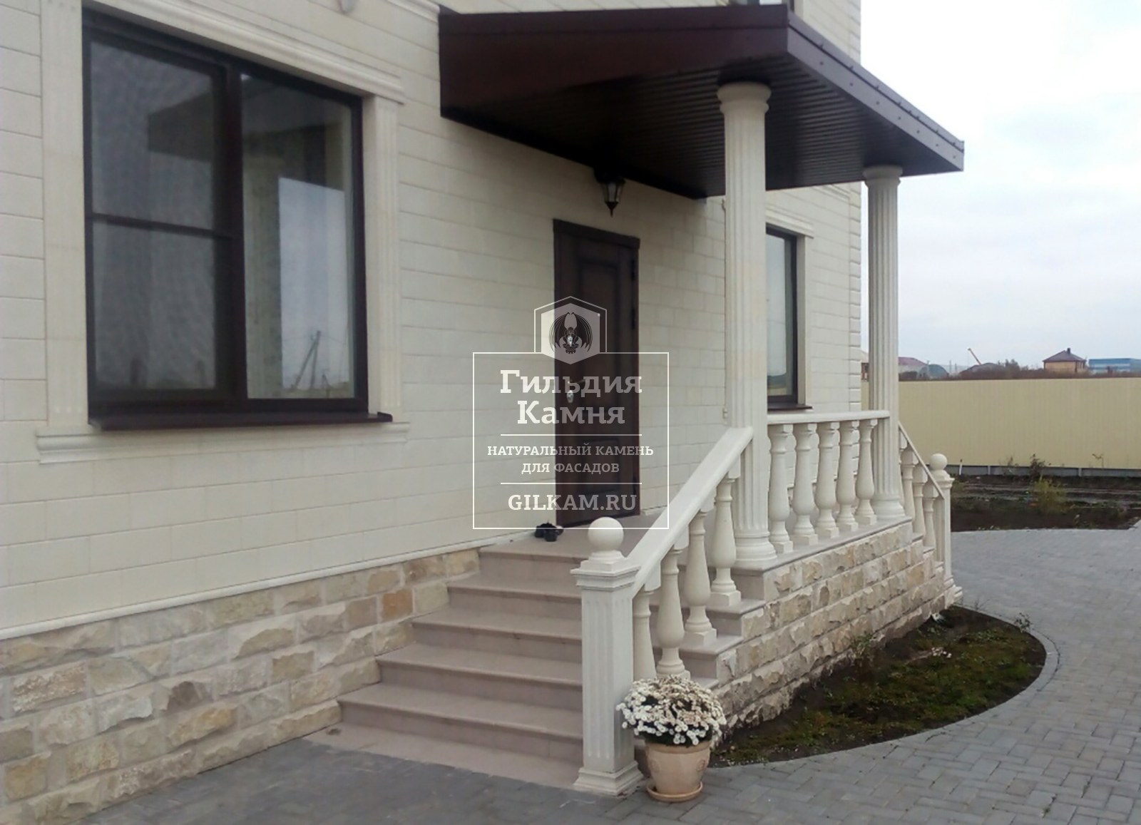 Крыльцо с колоннами и балюстрадой
