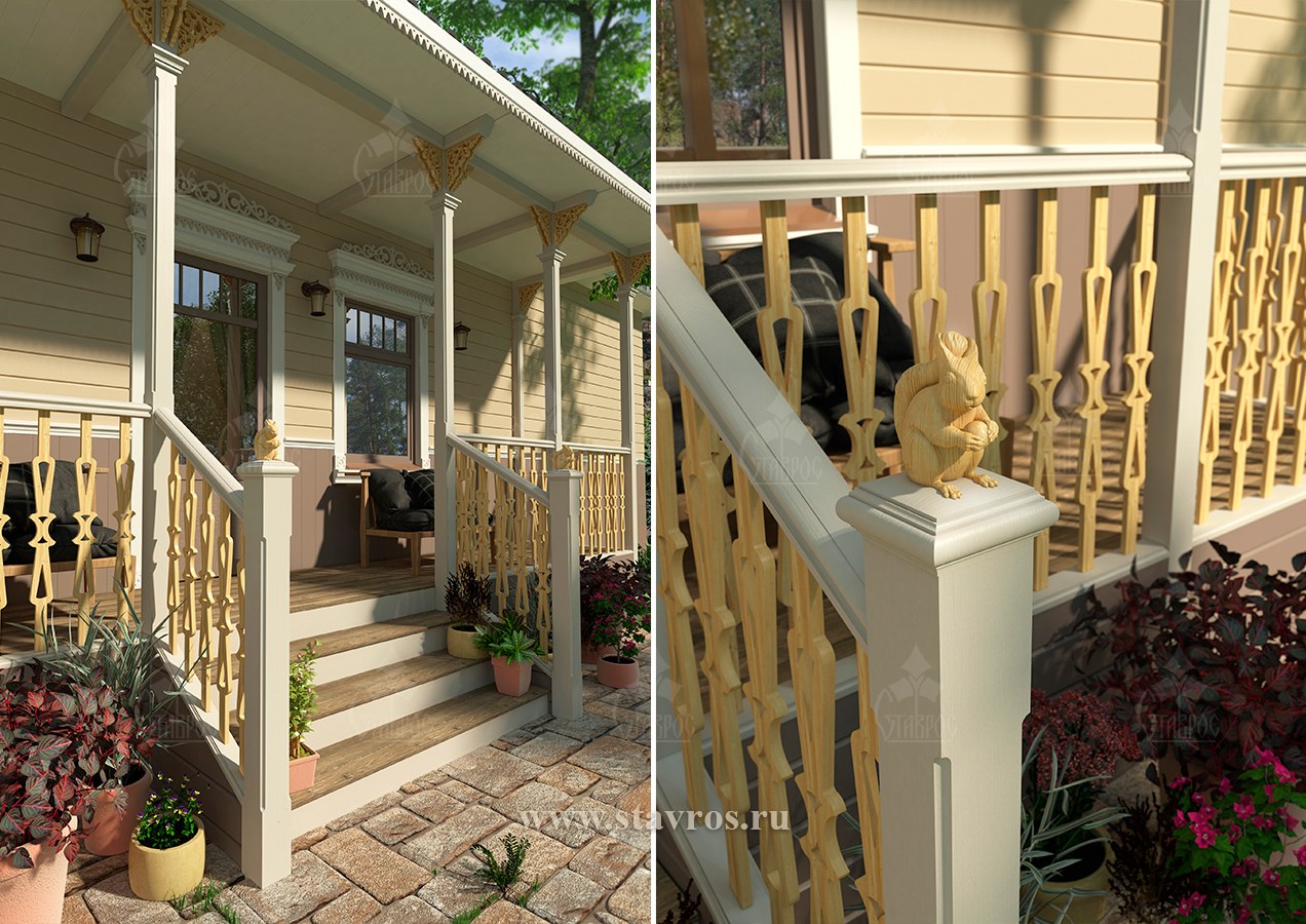 Беранда с балясинами из дерева