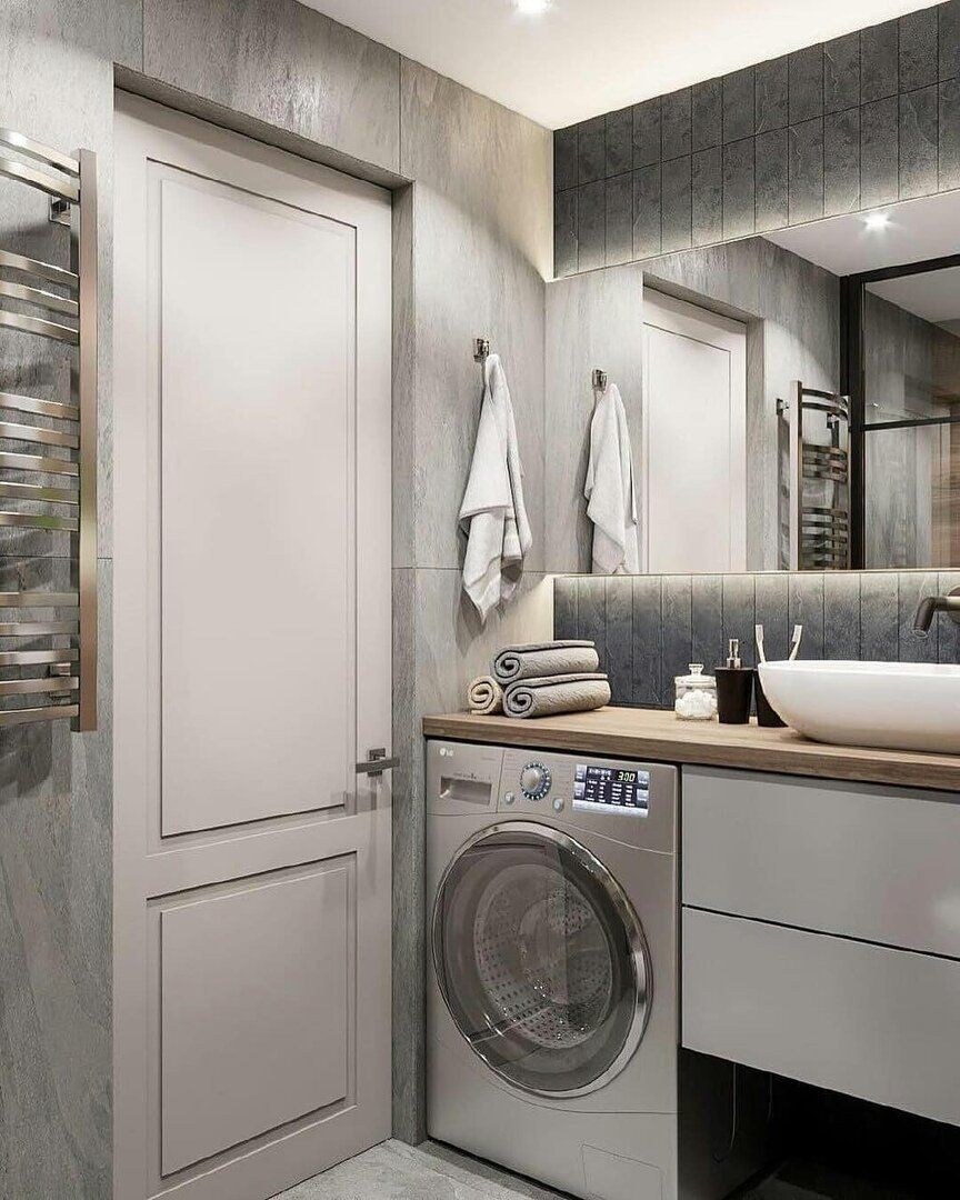 Дизайн ванной комнаты с туалетом и стиральной и душевой кабиной (78 фото)