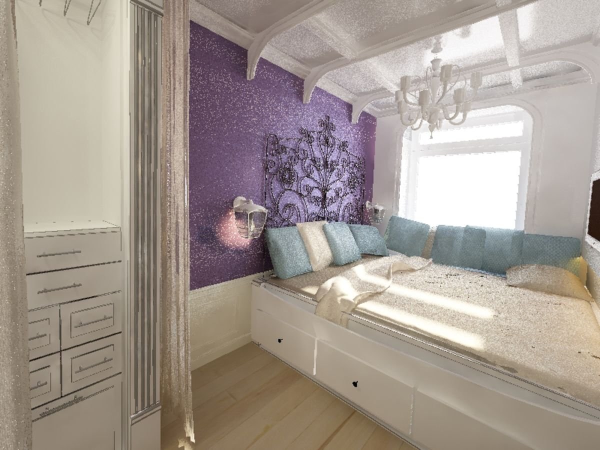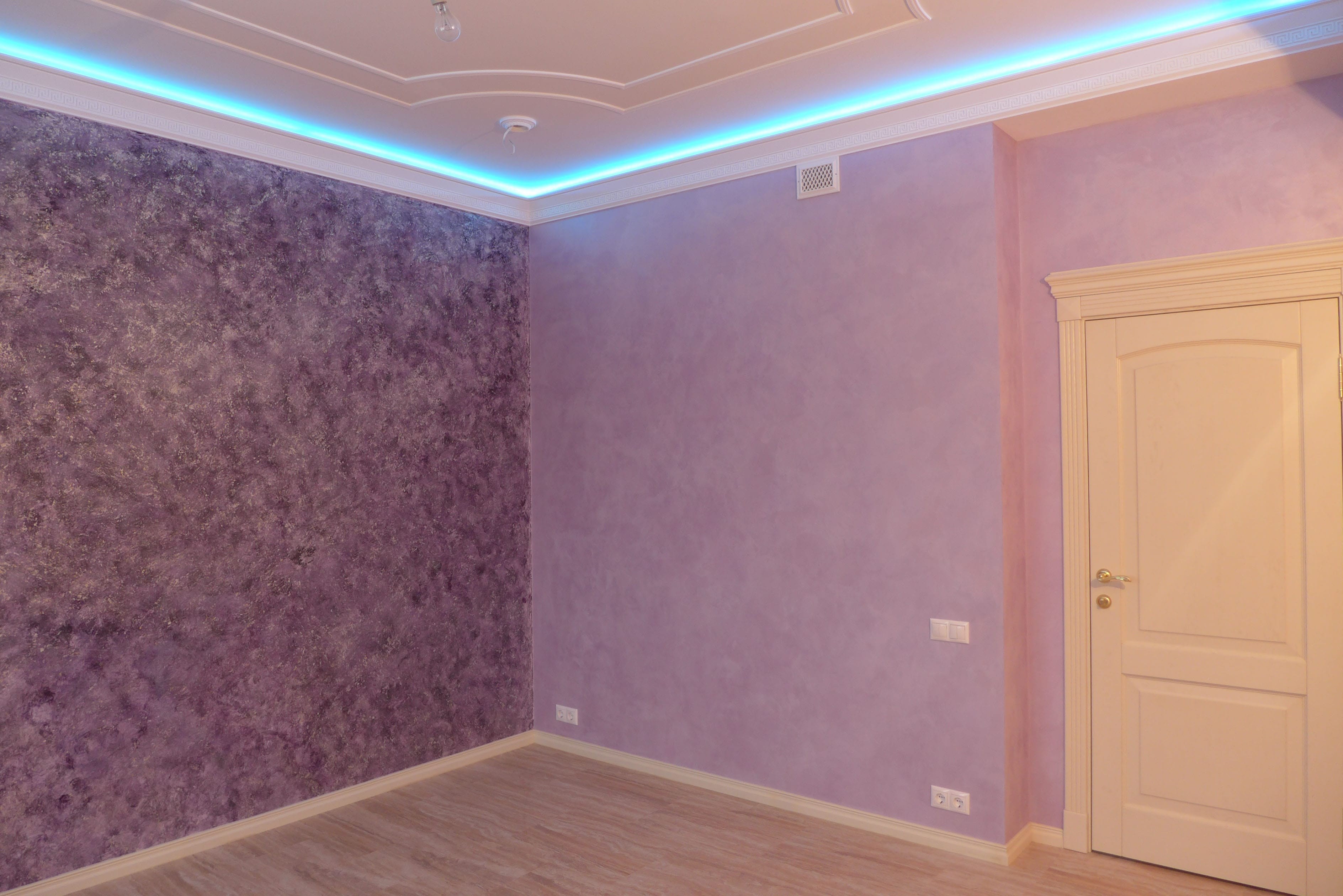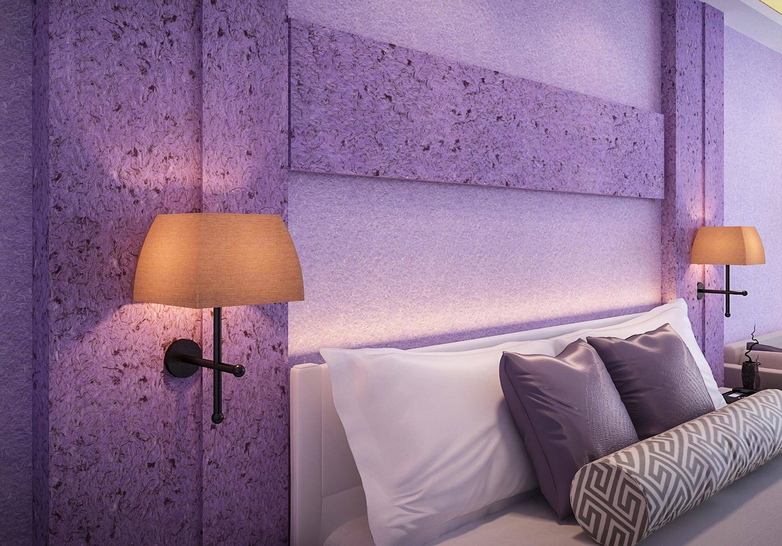 Сиреневая штукатурка декоративная в спальне