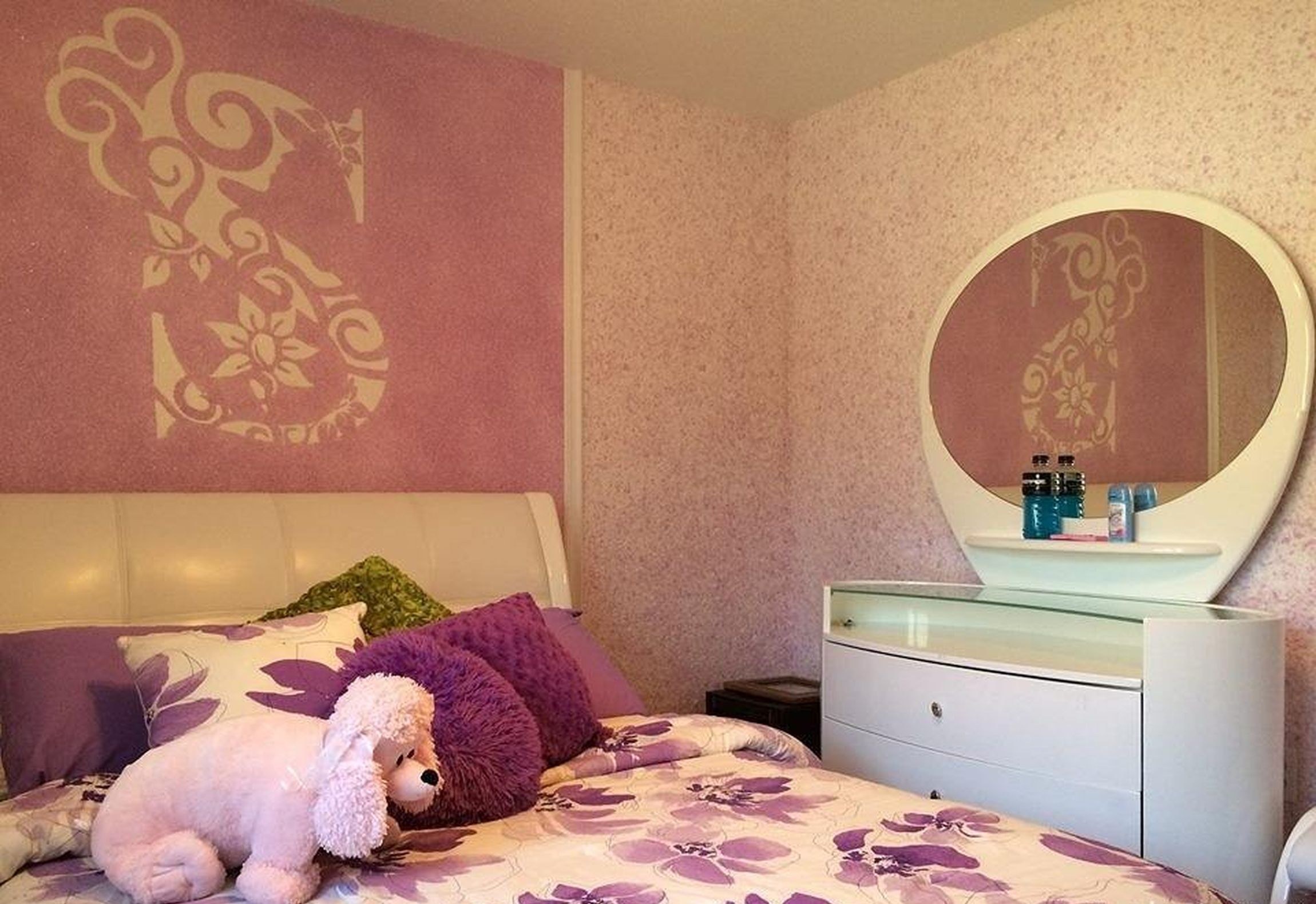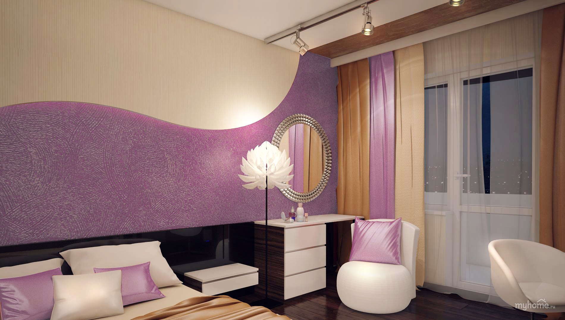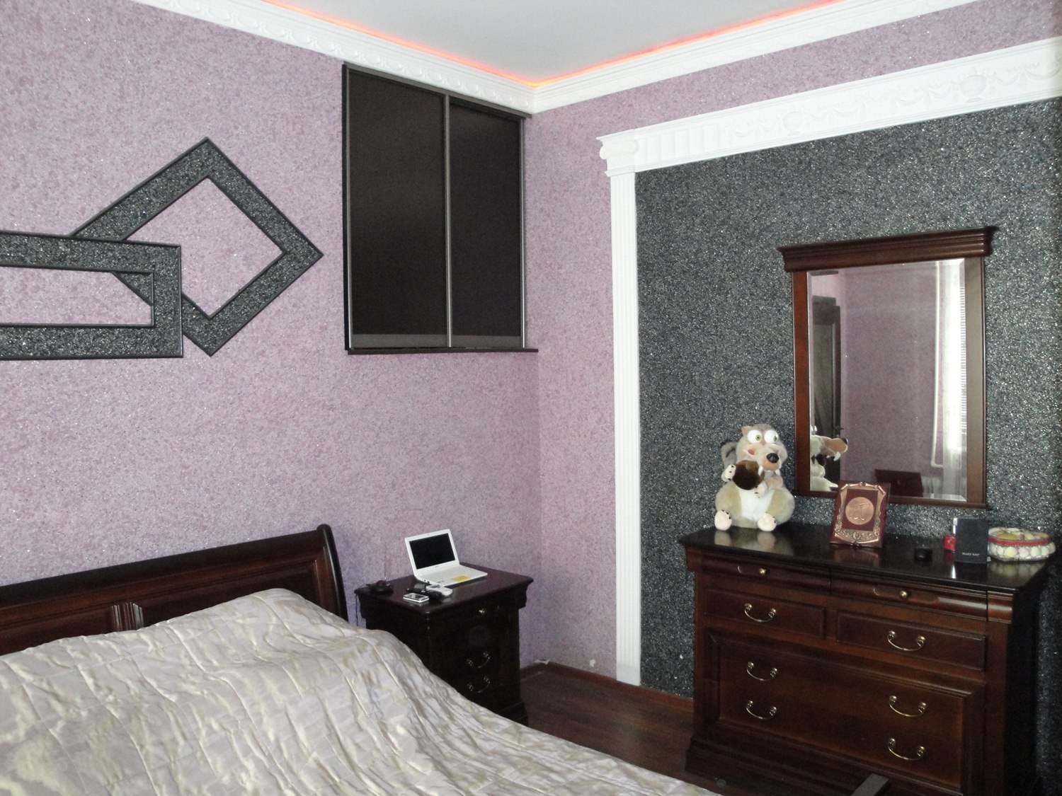 Сиреневая штукатурка декоративная в спальне