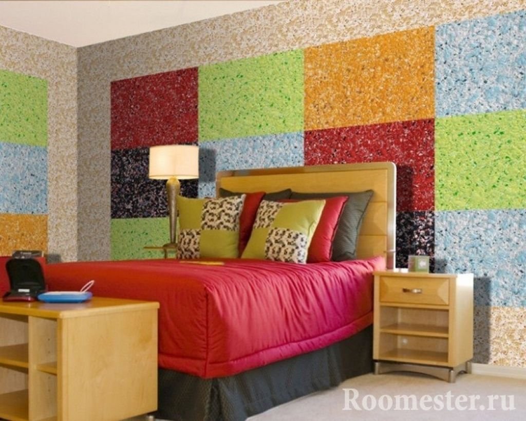 Жидкие обои в спальне