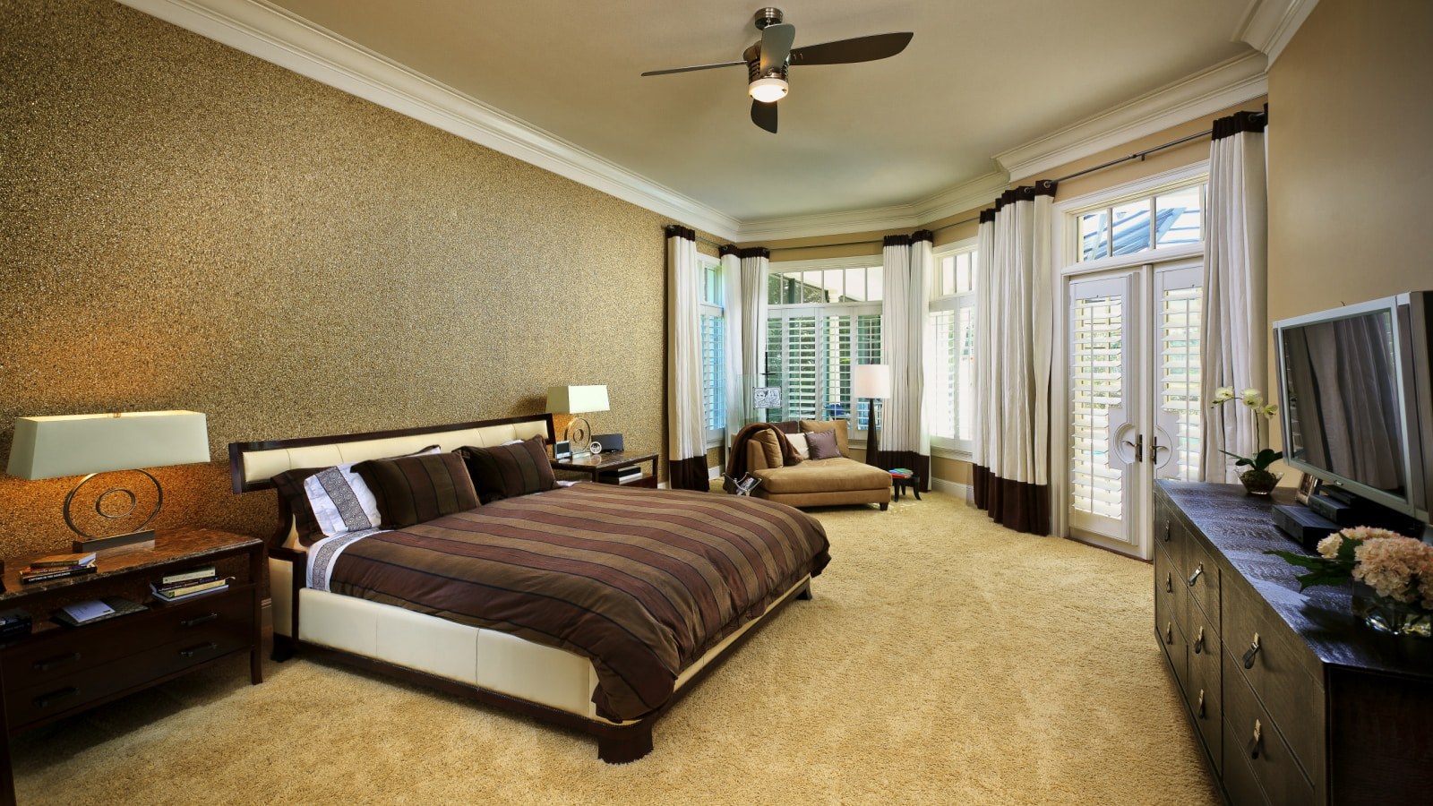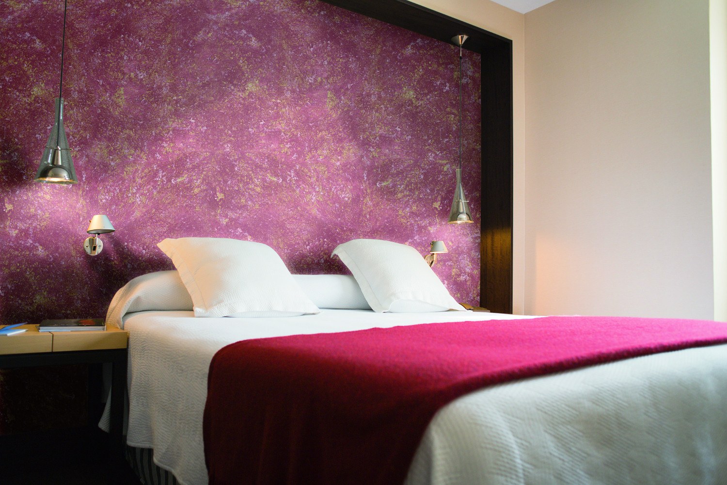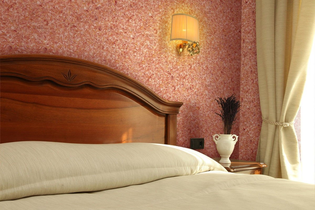 Шелковая штукатурка в интерьере спальни