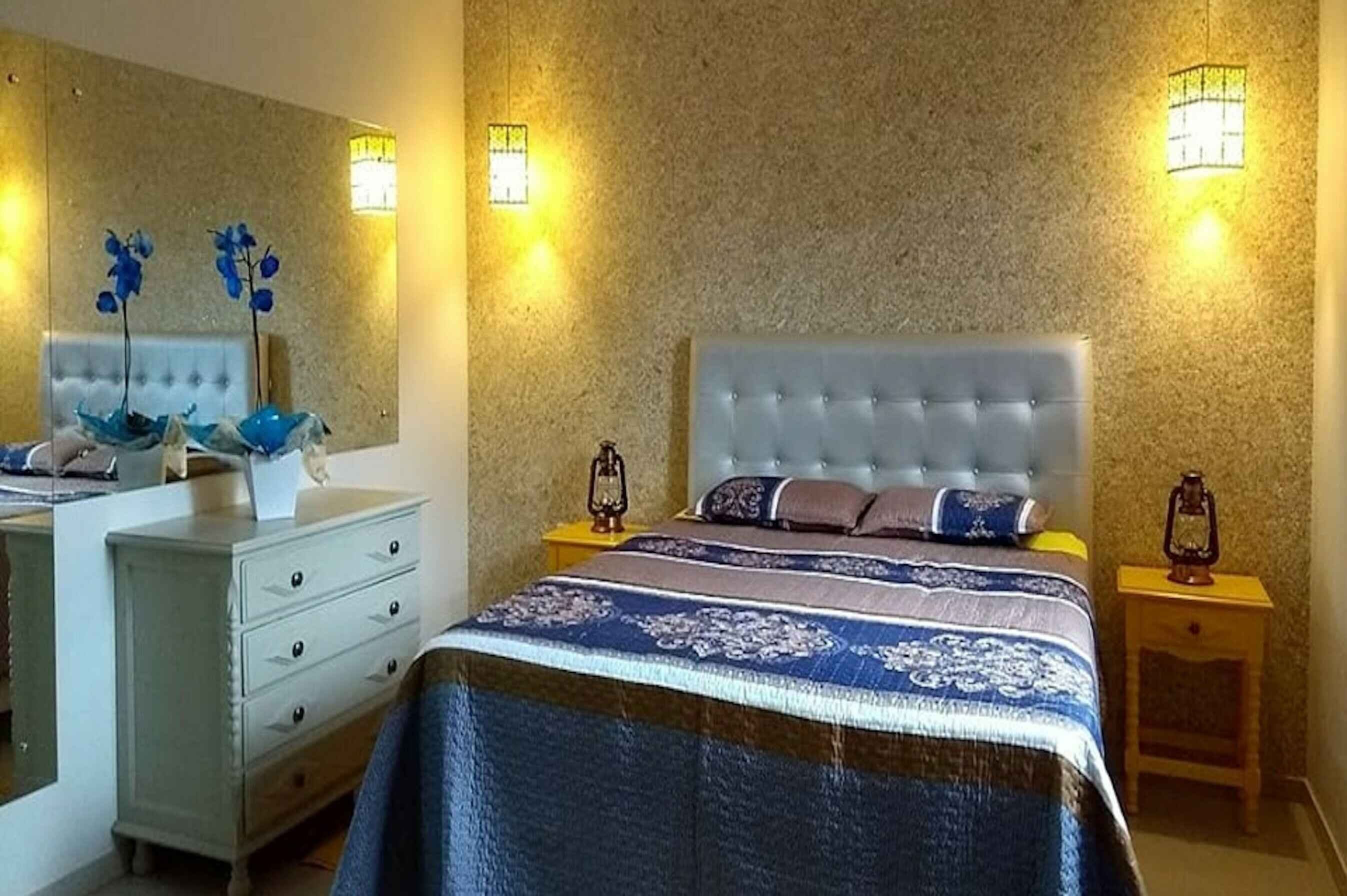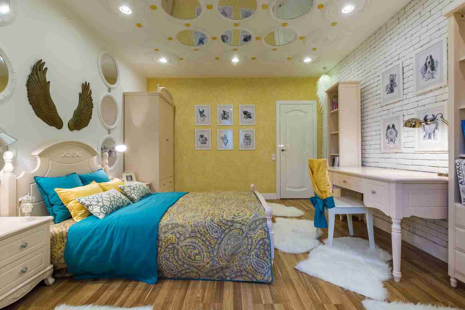 Спальня в желто бирюзовых тонах